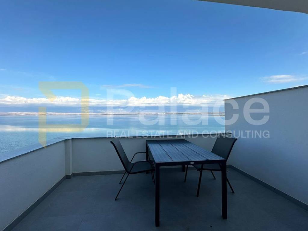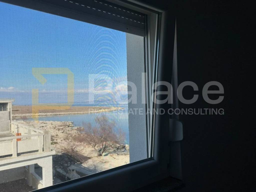 Beautiful apartment of 45 m is for sale on the island of Vir, located in the first row to the sea, with direct access to well-maintained beaches and promenades. This apartment provides a perfect place for relaxation and enjoyment of summer days with panoramic sea views, making it ideal for nature and peace lovers. It consists of a spacious living room connected to the kitchen and dining area, a bathroom, a bedroom, and a covered terrace, from which you can enjoy a charming sea view.