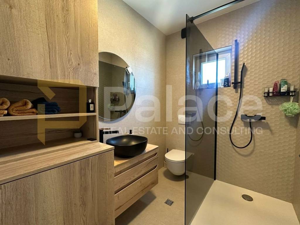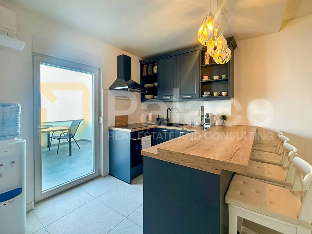The apartment is completely newly decorated and is being sold fully furnished and ready to move in immediately, which further increases its value. The apartment is equipped with its own water and electricity connections and has a septic tank and a drinking water tank. The building has been recently renovated, with installed PVC windows, double-glazing, aluminum shutters, and mosquito nets, as well as a facade covered with 10 cm of styrofoam insulation, protecting it from the weather conditions near the sea.