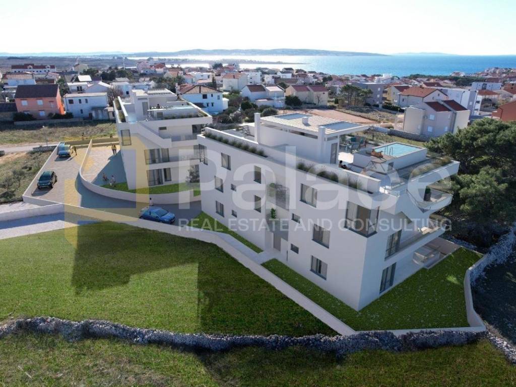 For sale is an exceptional penthouse marked S7 on the second floor of a residential building equipped with an elevator and a total of eight residential units. The apartment has an area of 165m2 and is located only 700m from the sea. The property consists of a hallway, three spacious bedrooms, two bathrooms, a guest toilet, and an open-concept living room with a kitchen and dining area. The living room opens onto a balcony and a rooftop terrace. The rooftop terrace features a covered area with a kitchen, storage room, and a toilet. There is also a beautiful 10.38m2 pool on the terrace. The perfect connection between the rooftop terrace and the living area is a private staircase of 5m2.