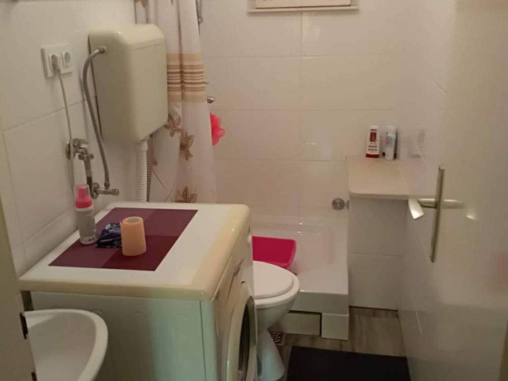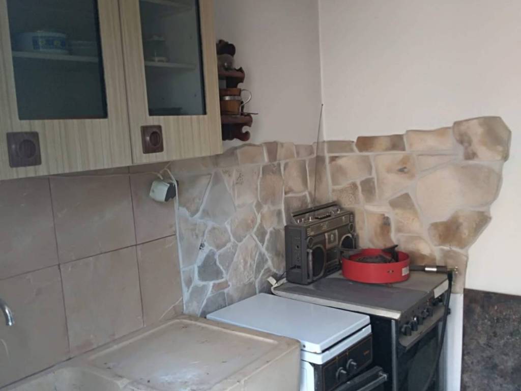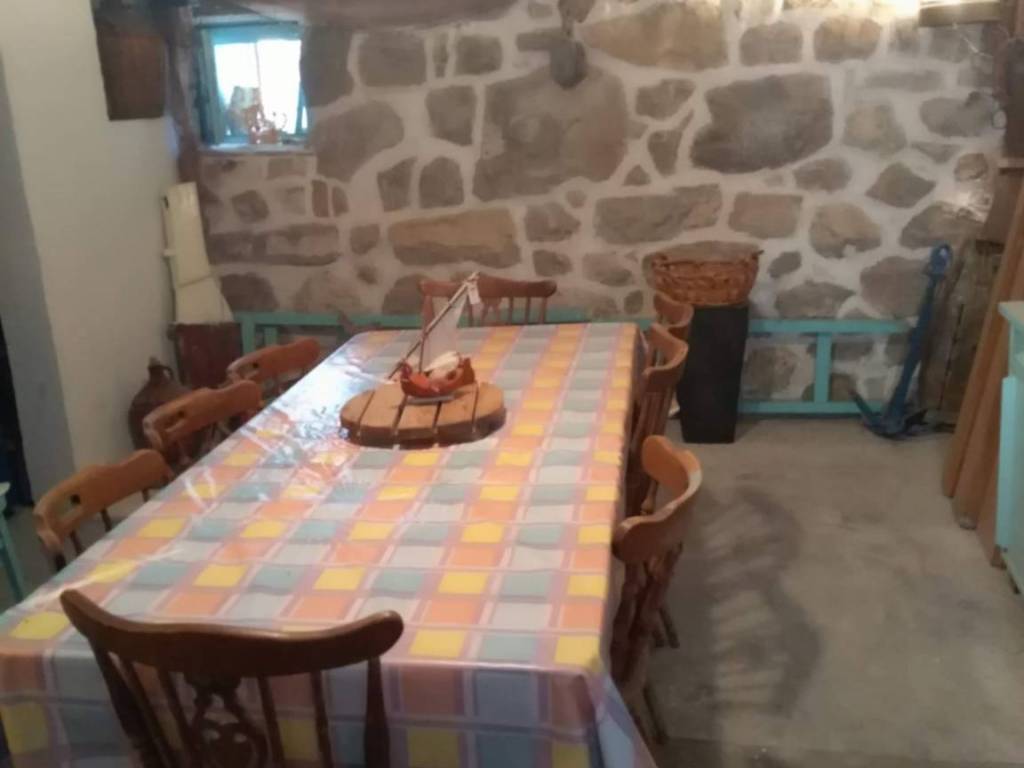 The house consists of a ground floor and a first floor, with a beautiful tavern on the ground floor and a 53m2 apartment on the first floor, comprising a hallway, two bedrooms, a bathroom with a toilet, and a kitchen with a dining area and a living room.