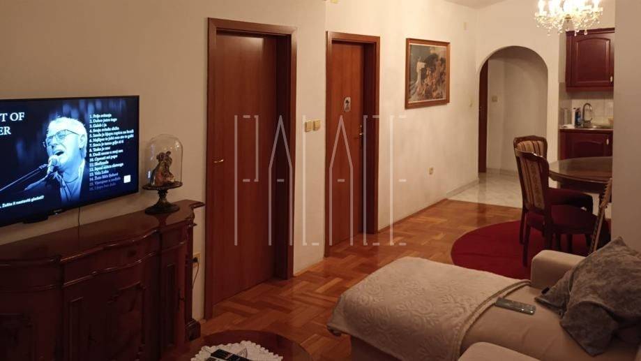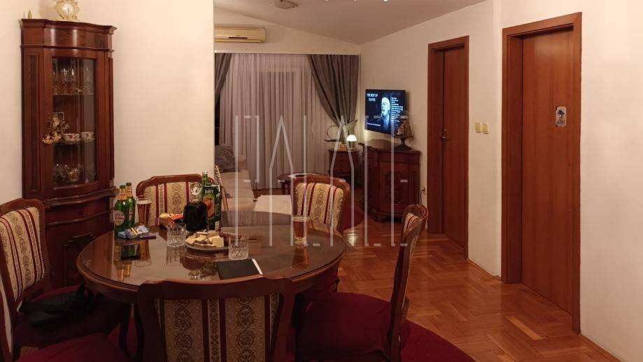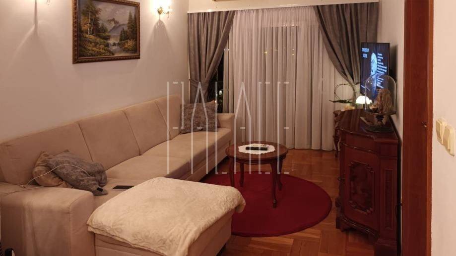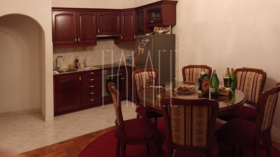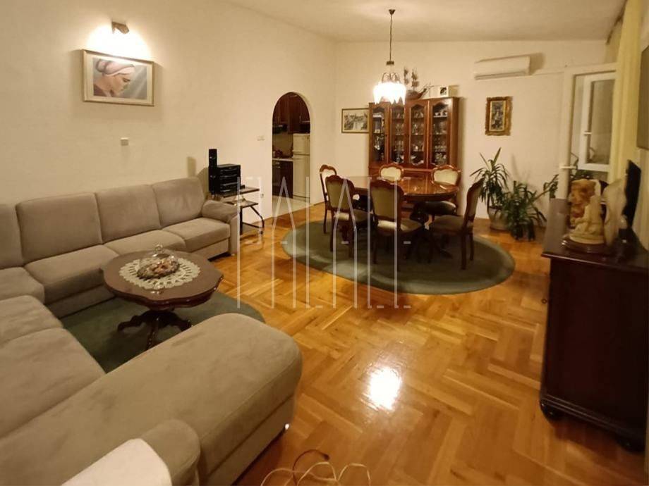 The apartment consists of two large living rooms, two kitchens and a dining room, with access to the balcony, entrance hall, four bedrooms, two bathrooms. The apartment was recently mostly renovated.