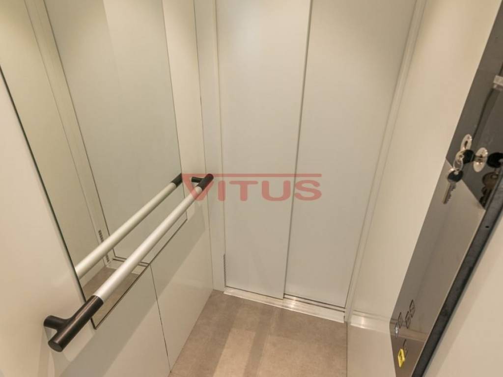 The apartment has its own elevator, an auxiliary building of 60 m2, which is arranged as a one-room apartment and is located in a landscaped garden, and two parking places in the yard.