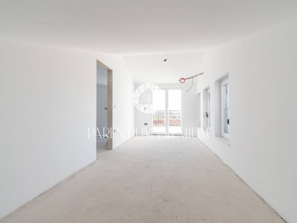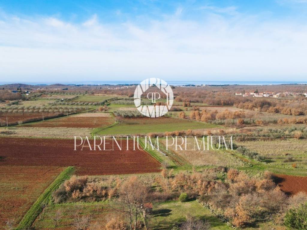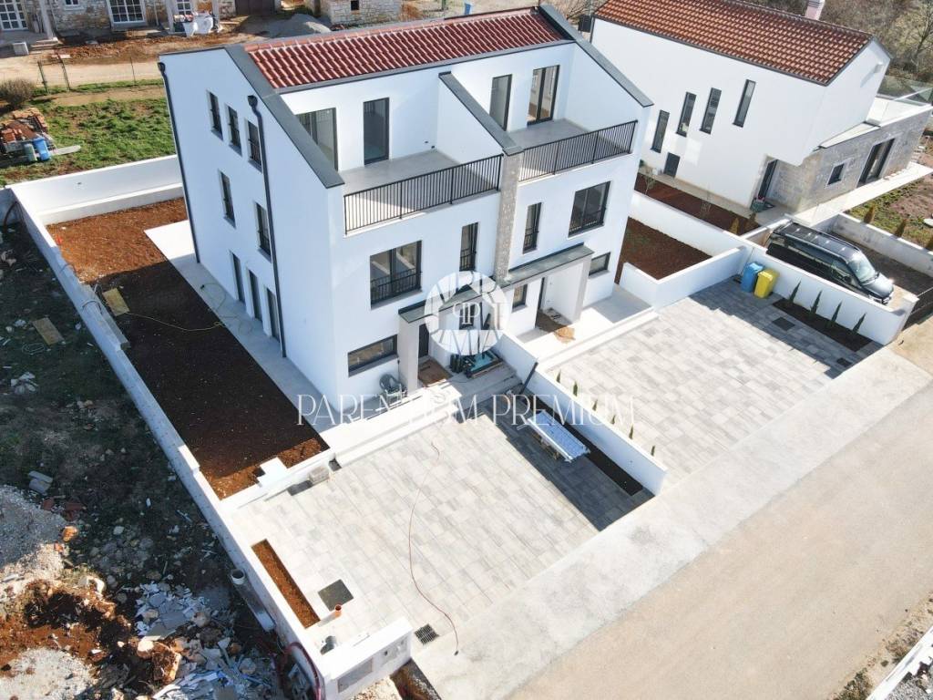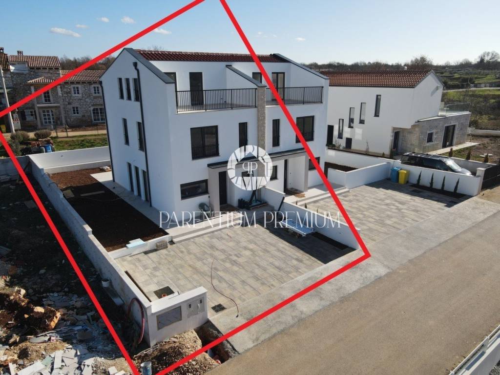 In a quiet location near Poreč, this new semi-detached house is located, with a panoramic view of the Istrian landscape and the sea from the terrace.