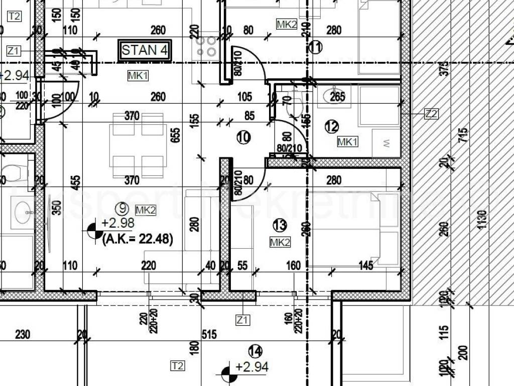 Trogir, two-bedroom apartment 56 m2 in a new building in a smaller residential building with only 7 apartments. The apartment is located on the first floor of the building, north-south oriented and consists of two bedrooms, bathroom, hallway, kitchen with dining room and living room and a large terrace (9 m2). The apartment has one outdoor parking space. Possible purchase of an additional parking space (10,000 euros).The building is located in a quiet and peaceful location only 900 m from the city center and close to the Plodine shopping center. The start of work is planned for spring 09/2026 and the completion is planned 18 months after the start of construction. Quality equipment (inverter air conditioning, underfloor heating in the bathroom, six-chamber PVC joinery, quality ceramics. burglar-proof doors, thermal facade, ... etc.). Payment by construction stages.For more information and reservations, contact the agency.