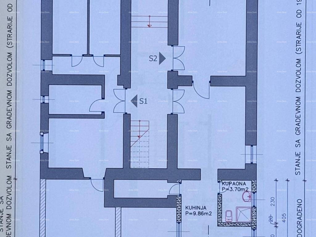 L'appartamento è composto da soggiorno, cucina (9,68 m), ampio ripostiglio, bagno (3,7 m) e una camera da letto che può essere divisa in due stanze (impianto elettrico già separato).