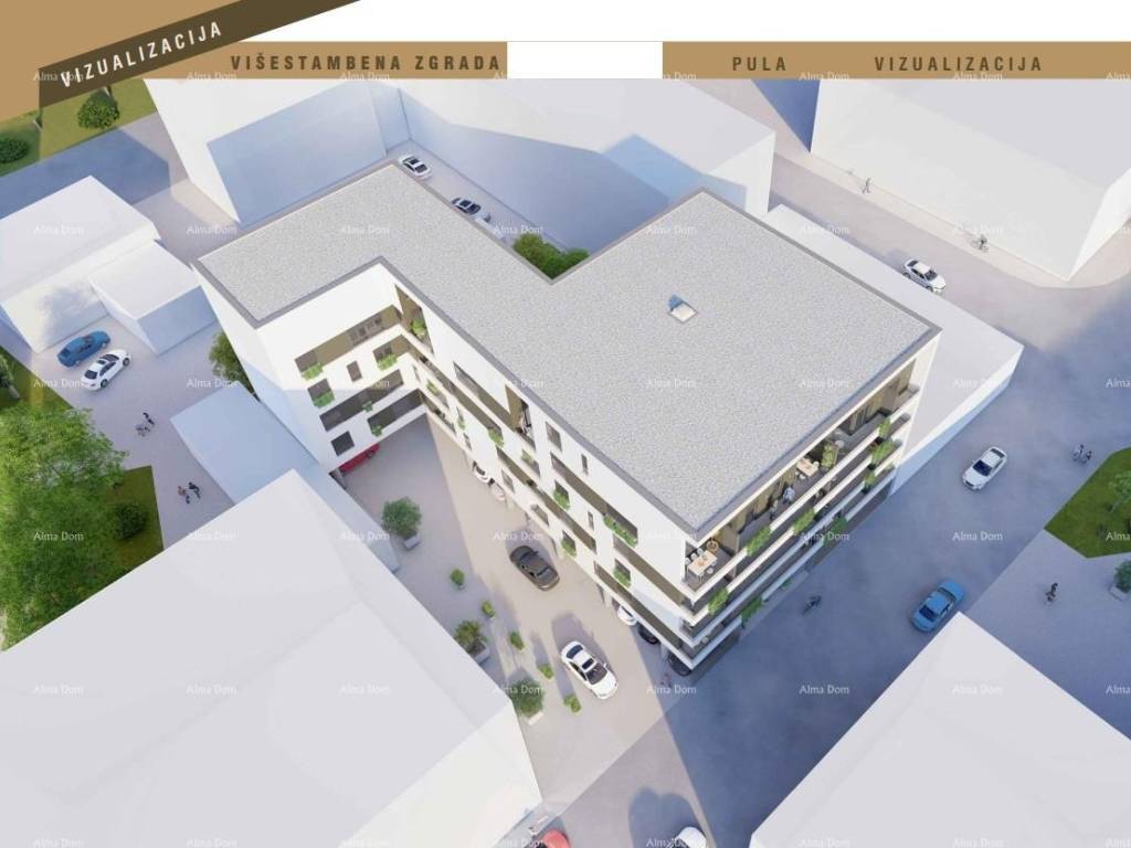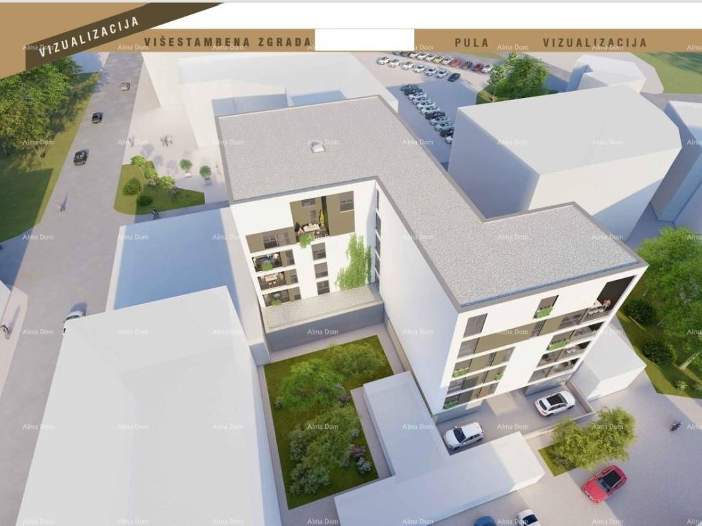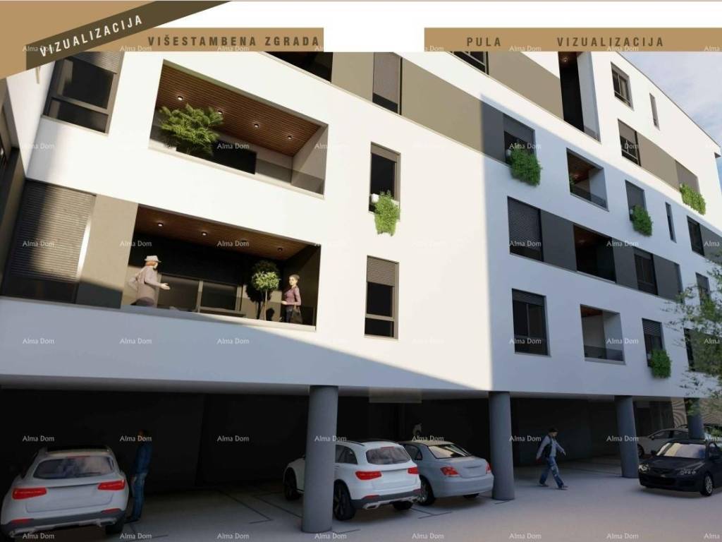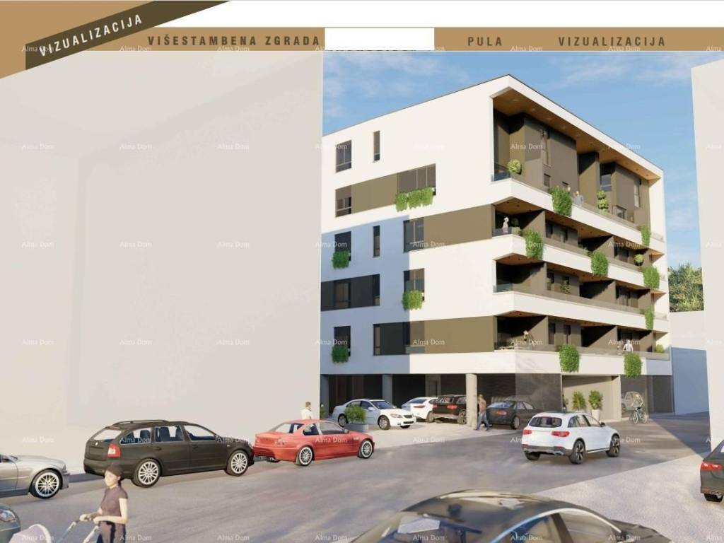 Offerta di nuova costruzione nel centro di Pola! Al piano terra della palazzina ci saranno posti auto, posti auto garage, appartamenti di diverse metrature.