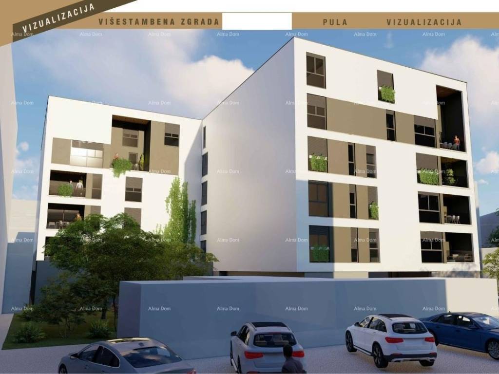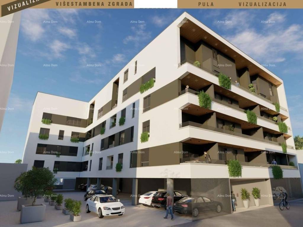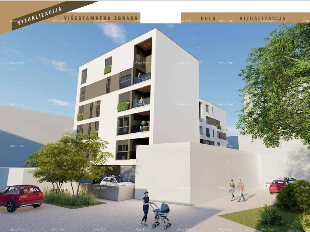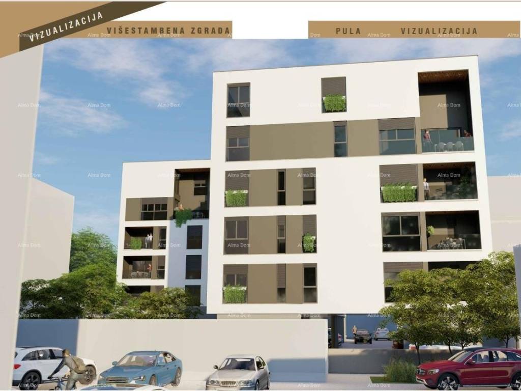 Offerta di nuova costruzione nel centro di Pola! Al piano terra della palazzina ci saranno posti auto, posti auto garage, appartamenti di diverse metrature.