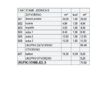 L'appartamento B si trova al primo piano dell'edificio A2 e consiste in: un soggiorno con cucina e sala da pranzo, 3 camere da letto, un bagno, un corridoio e un balcone.
