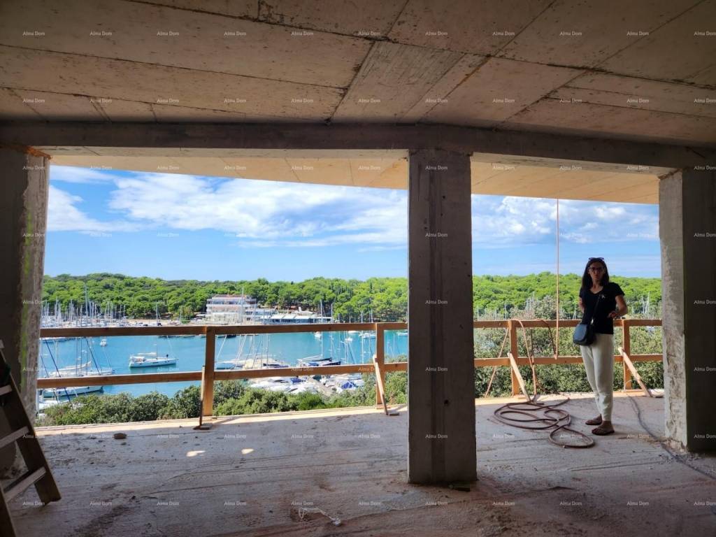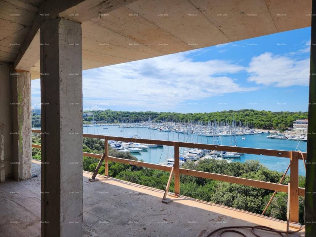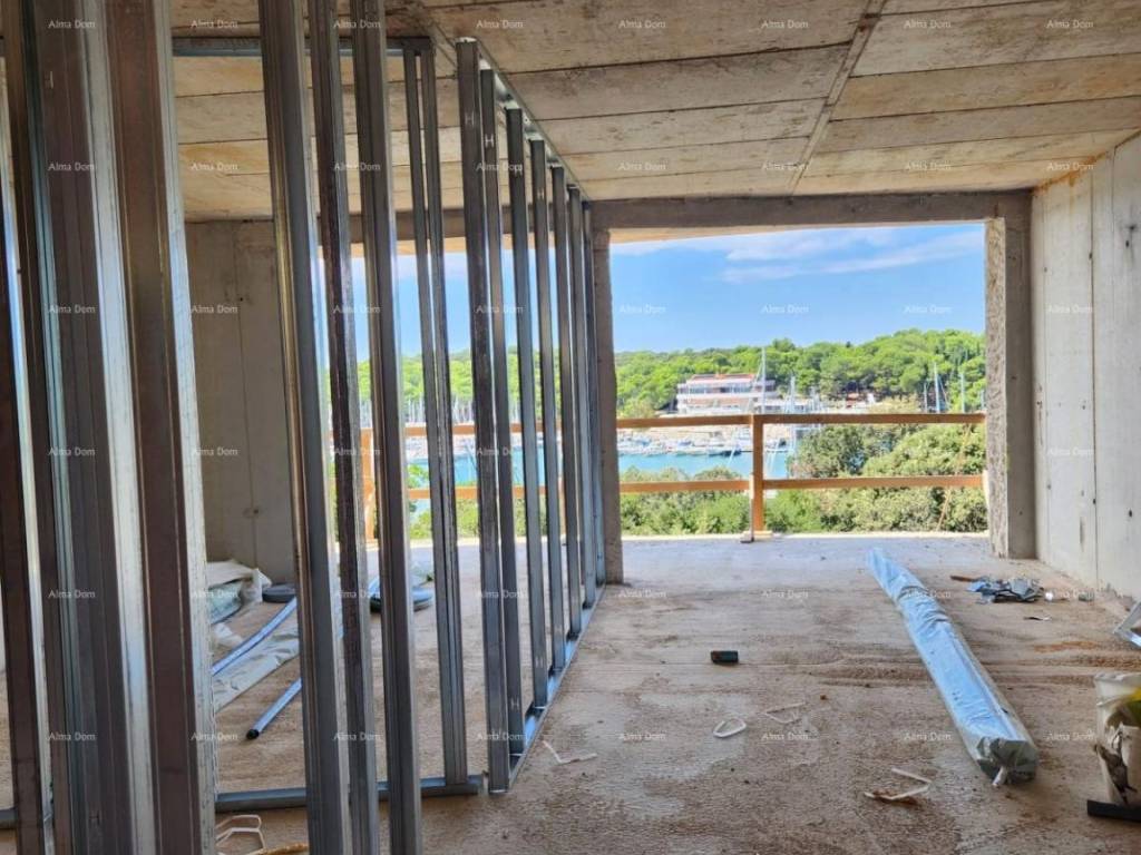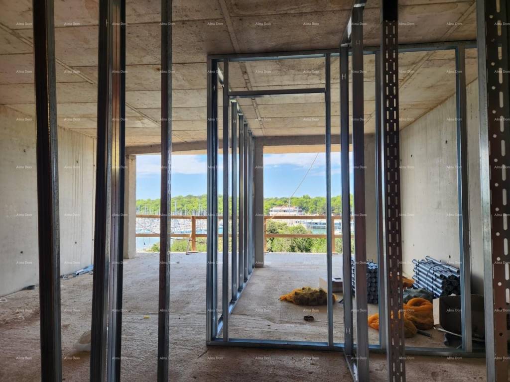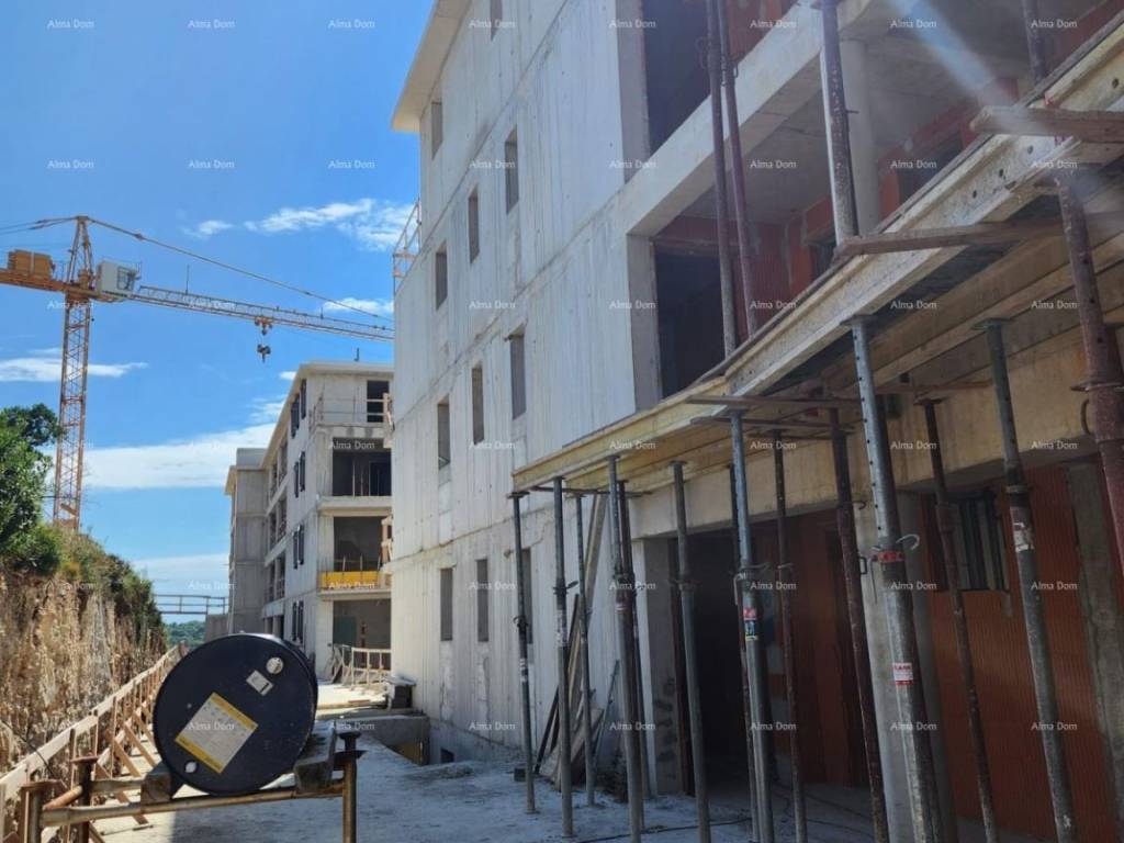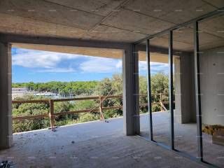 In offerta c'è un appartamento composto da un ingresso, una camera da letto, un soggiorno con cucina e sala da pranzo, e con accesso a una spaziosa terrazza. Grandi pareti di vetro offrono molta luce.