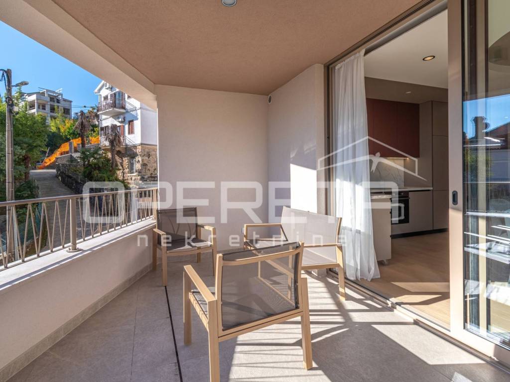 Modern and fully equipped apartment on the 1st floor of a new building, located in the heart of Opatija, is ideal for those who wish to enjoy a luxurious and comfortable lifestyle in this prestigious coastal town.