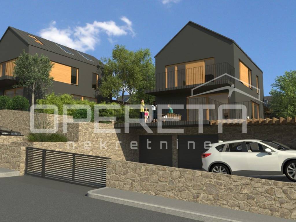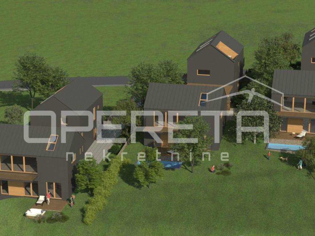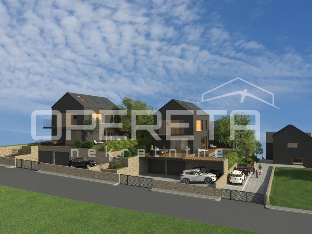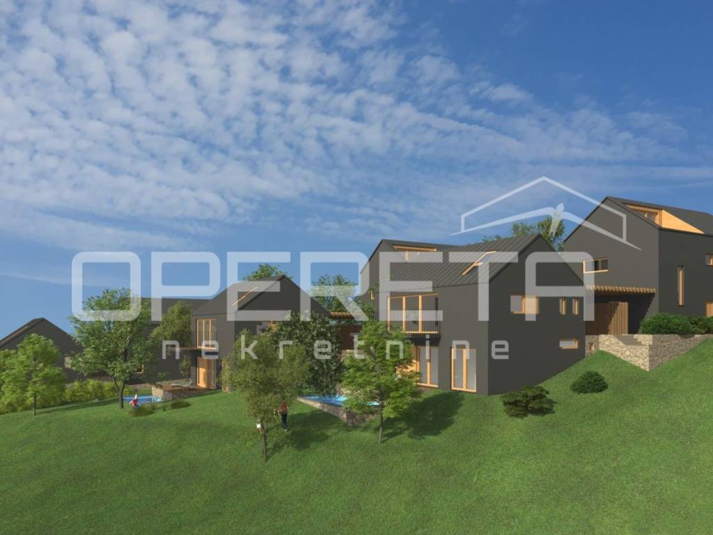 SAMOBOR, SURROUNDINGS, INVESTMENT LAND WITH BUILDING PERMITS FOR BUILDING 6 HOUSES Investment land for sale in an elevated location with a view of Žumberak, consisting of 3 parcels. A building permit was issued for the plots for the construction of a total of 6 family houses with swimming pools. The planned energy certificate of the house is A+ and utility contributions have been paid. According to the project, the net areas of the houses are 130 m2, 150 m2, two houses of 180 m2 and the remaining two houses of 220 m2, a total of 1080 m2. Each house has a swimming pool. A unique opportunity for a residential solution in a peaceful and idyllic natural environment, in the immediate vicinity of the town of Samobor. The possibility of selling individual plots of land. Price of land with building permit 153 EUR/M2
