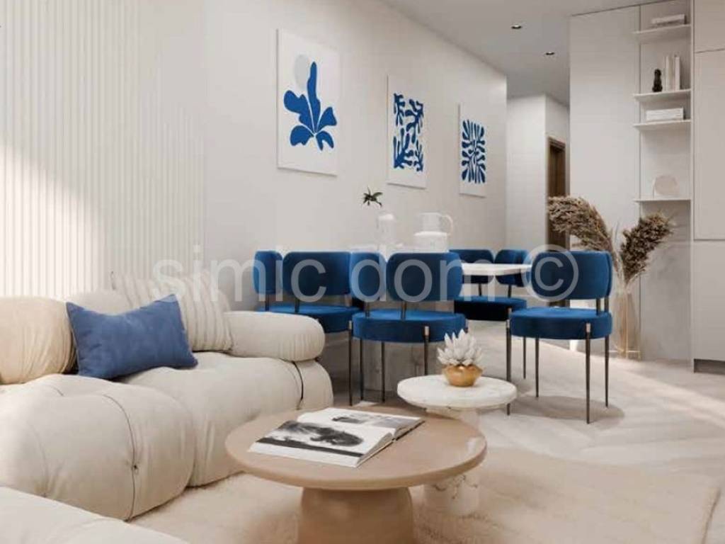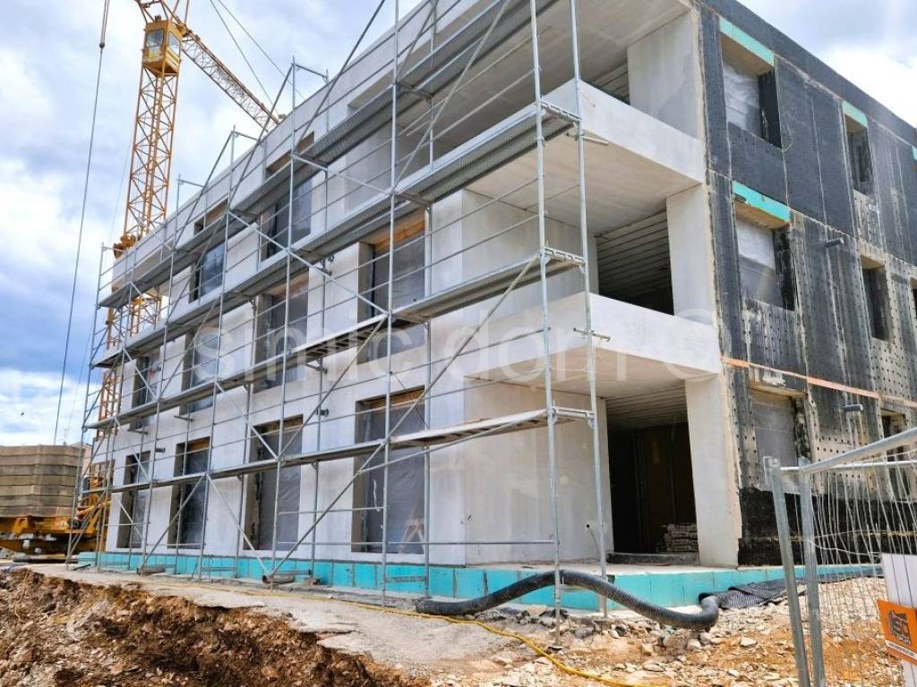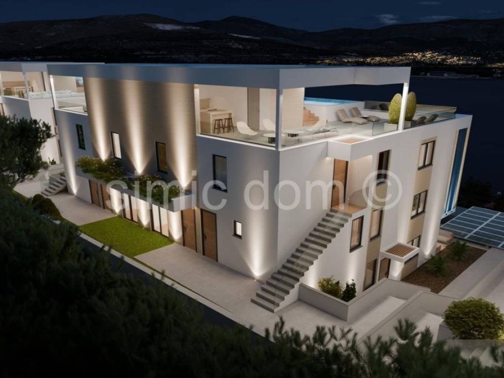 A two-bedroom apartment is for sale in a modern complex of buildings, just 150m from the beach on Ciovo. The entire complex offers a beautiful view of the sea. Apartment A3 is placed on the first floor, with a net usable area of 63.59 m2, or a gross area of 64.66 m2. It consists of a hallway, two bedrooms, toilet, bathroom, living room, dining room, kitchen and terrace. The apartment has one outdoor parking space with the option to purchase an additional parking space. The construction and equipment inside the apartment are of an extremely high-quality standard, and the investor also offers a service of furnishing the apartment and interior decoration according to the highest standards, with a modern design that meets the needs of buyers, as well as a service of managing the rental of the apartment. Investing with a guaranteed return is a key advantage of this project. The investor offers the possibility of renting the purchased apartments for tourist purposes, taking over the complete management and hospitality services. In this way, the owners are guaranteed a return on their investment without the need to engage in operational work, because everything is done on their behalf, which enables them to have a secure income from tourist rentals. This project is one of the first of its kind in the area, and similar concepts are successfully applied around the world, and this settlement represents a unique investment opportunity in an attractive location with great potential for generating income from tourist rentals and long-term real estate value.