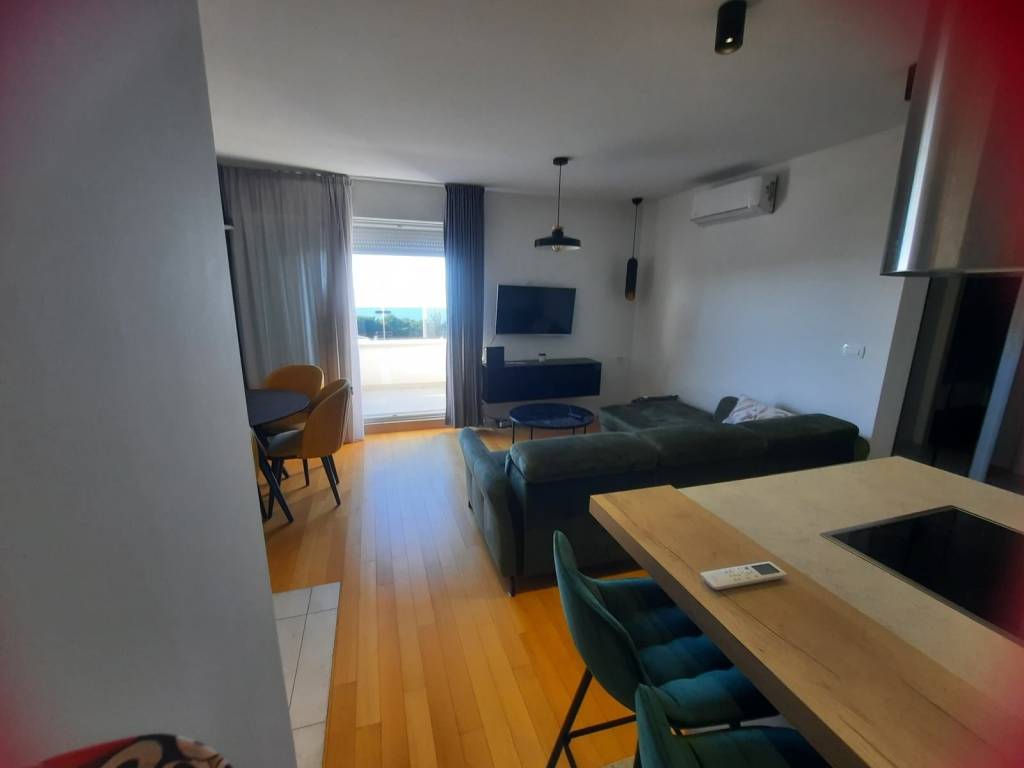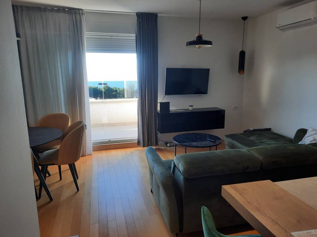 Posredujemo pri iznajmljivanju dvosobnog stana u Podstrani, kod hotela Lav. Položen je na trećem katu nove zgrade bez lifta. Sastoji se od dva kupatila, dvije klimatizirane spavaće sobe, i dnevnog dijela s terasom s otvorenim pogledom na more. Iznajmljuje se dugoročno uz uredan Ugovor o najmu i prijavu boravišta po potrebi. Dozvoljeni kućni ljubimci naviknuti na život u stanu. Uz stan se iznajmljuju dva vanjska parkirna mjesta koja su u cijeni.