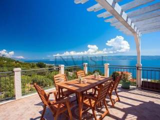 On the first floor there is a covered terrace with outdoor furniture, a bedroom with a fireplace and a living area, and a bathroom. An internal staircase lined with Brač stone leads to the second floor with three bedrooms and two bathrooms, one of which has its own bathroom and access to the terrace. The third floor contains two bedrooms, each with its own bathroom and access to a covered terrace. All bedrooms are air-conditioned, and all terraces offer an open view of the sea.
