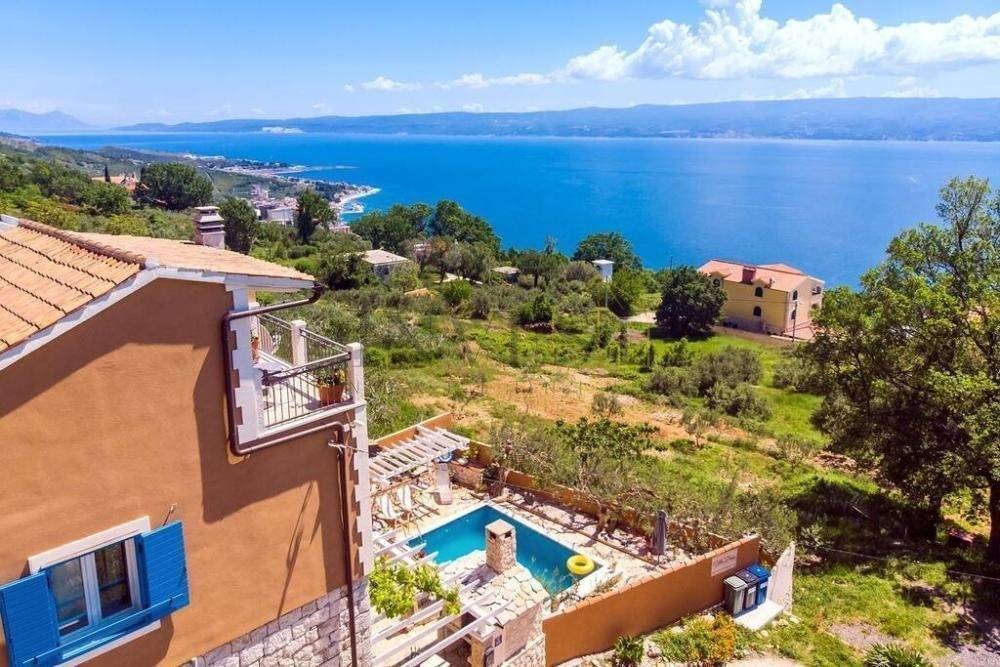 A stone house with a swimming pool and open sea views is for sale, located on a hill in a quiet part of Jesenice, not far from Omiš.