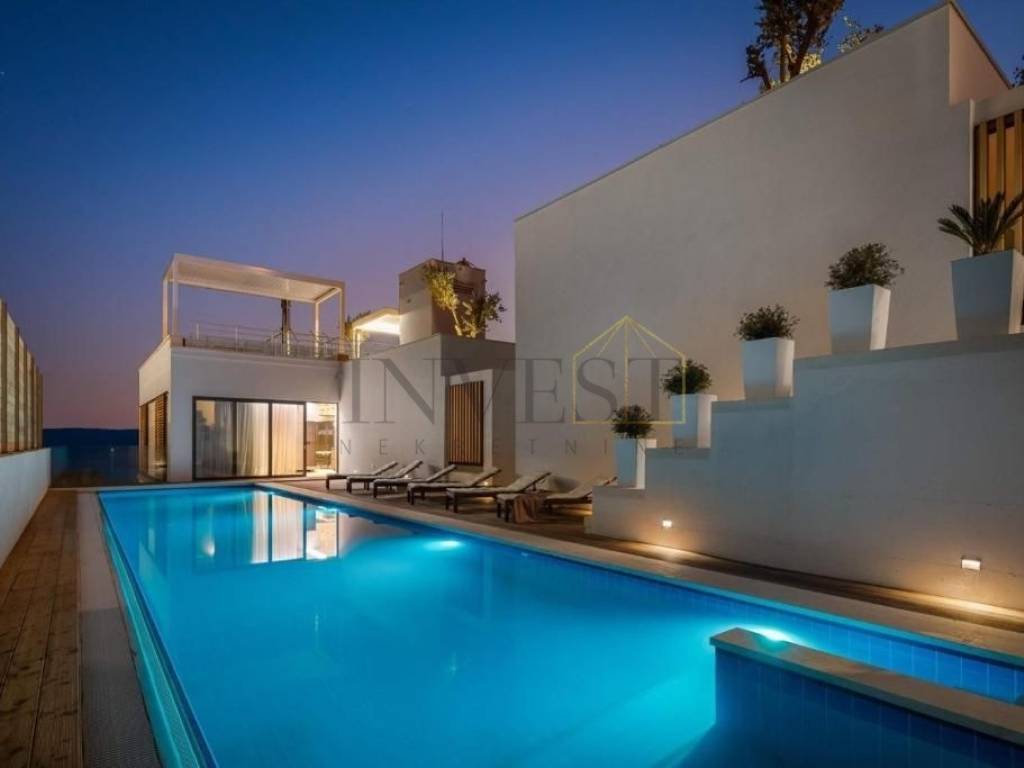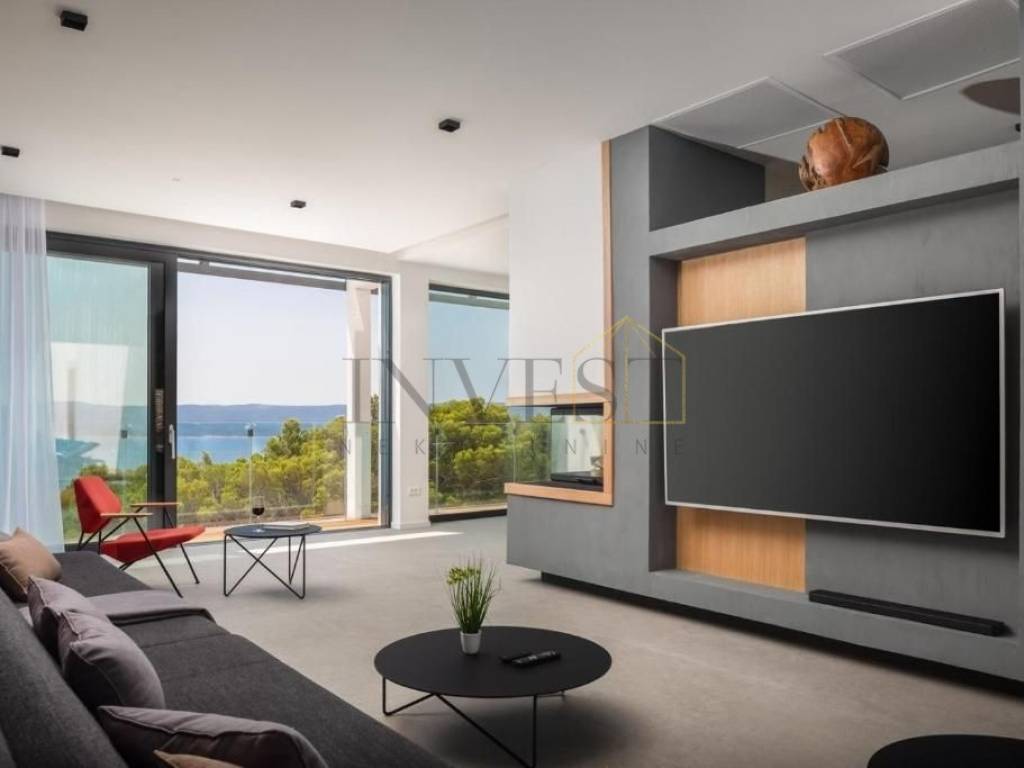 This impressive villa with an incredible view is located in the idyllic surroundings of Marušić. With a total area of 297 m2, distributed over the ground floor, two floors and a spacious roof terrace, this villa offers an extraordinary combination of luxury and comfort. With three elegantly decorated bedrooms, each with its own bathroom, and additional facilities such as a wellness center and a private pool, this villa offers an exclusive experience with a beautiful view of the islands of the Central Dalmatian archipelago and the Makarska coast.