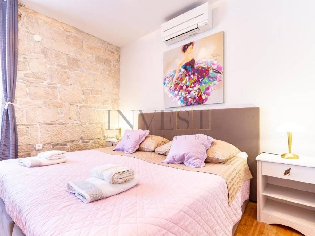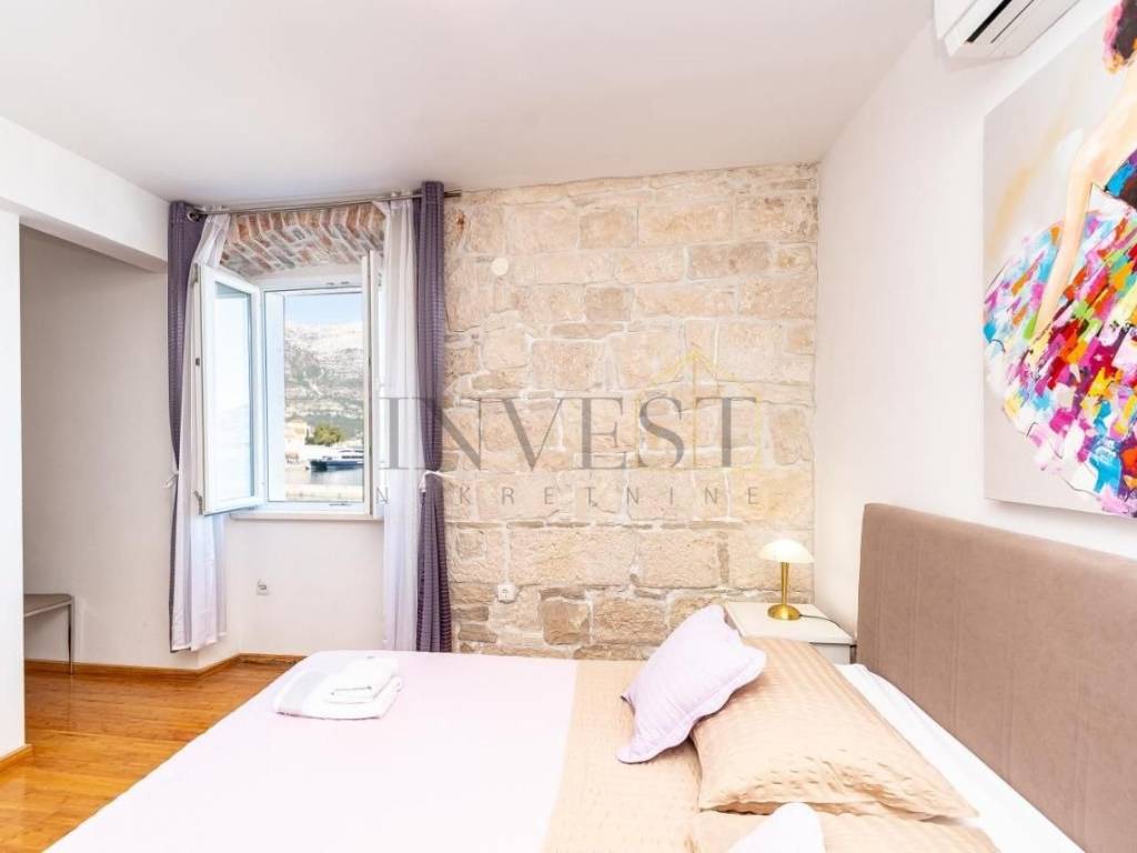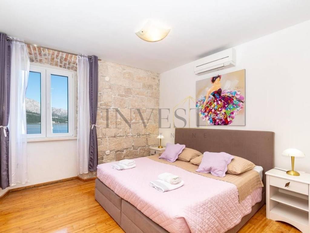 For sale is a beautiful Dalmatian stone house located first row to the sea, in the very center of Korčula. This exclusive property, with a total interior area of 210 m, consists of a basement, ground floor and first floor and is divided into two separate apartments. It has a total of four bedrooms and four bathrooms, and the modern decoration fits perfectly into the authentic Dalmatian style.