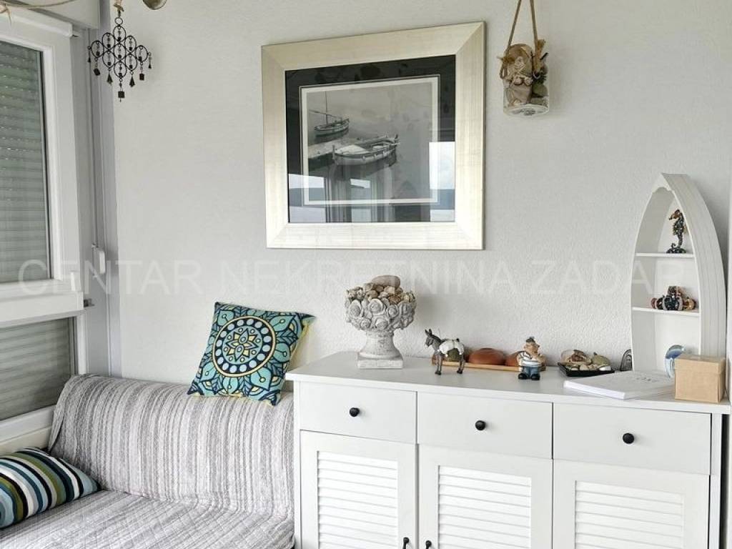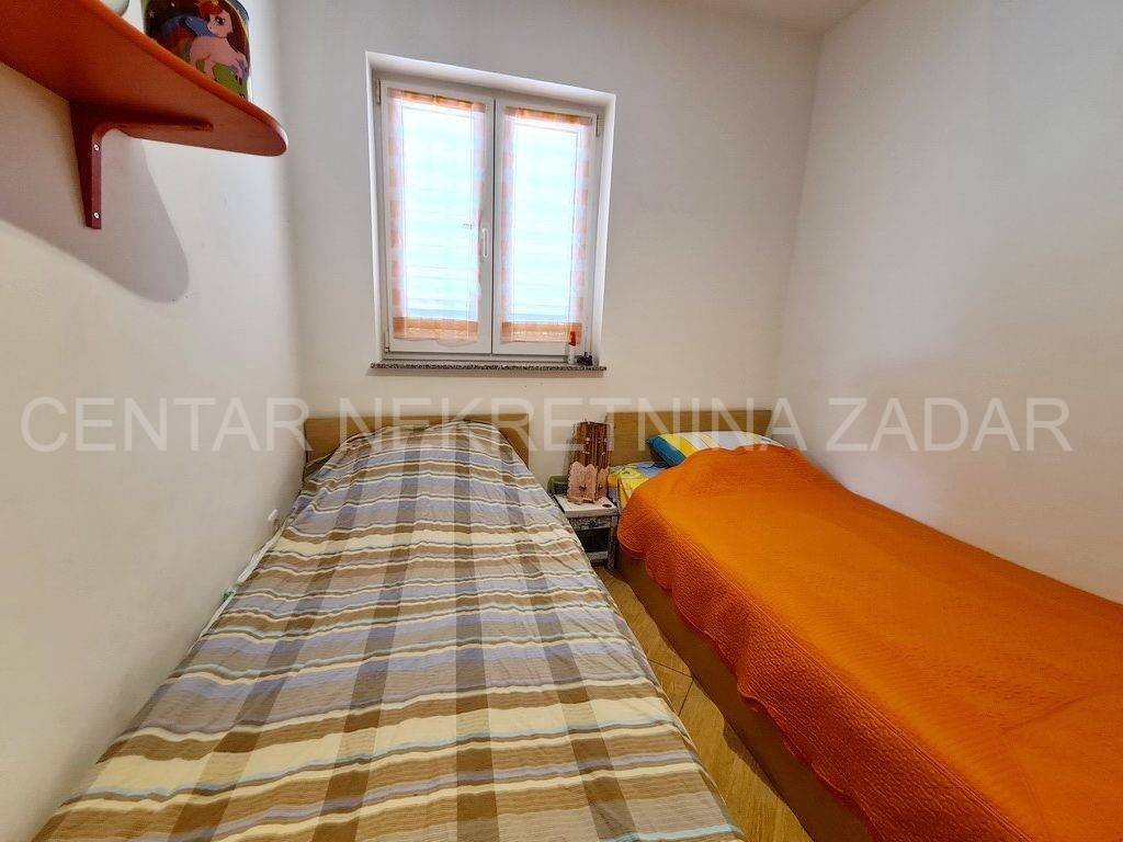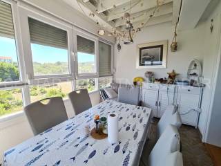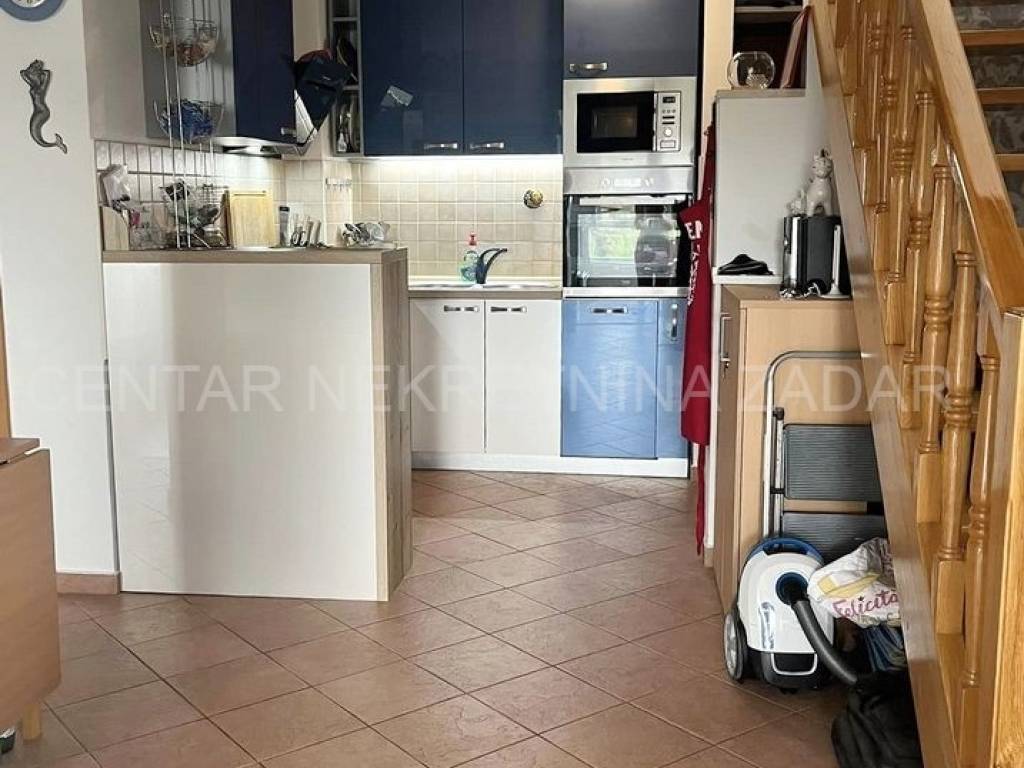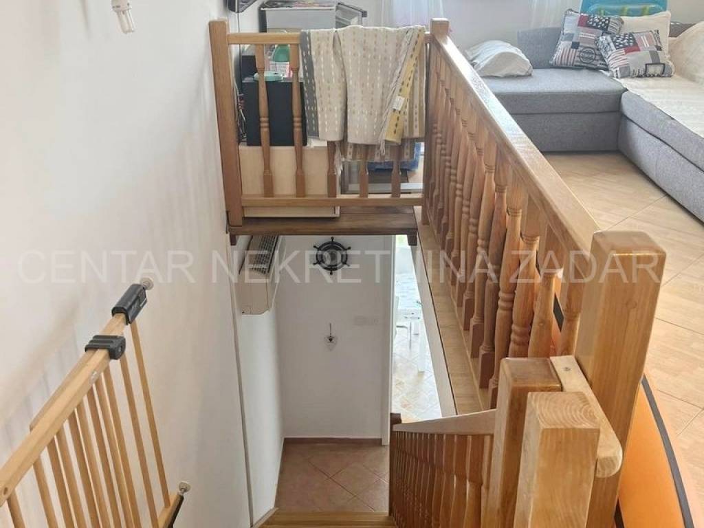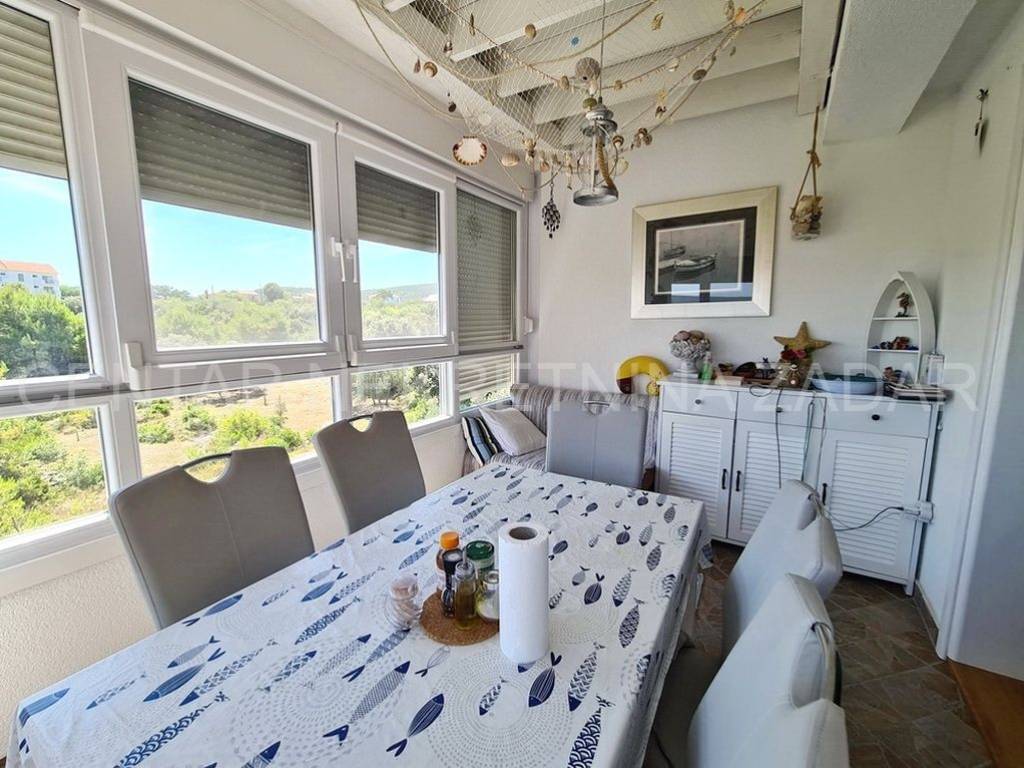 fully furnished duplex apartment in Dobropoljana is for sale, located on the second floor of a building 120 m away from the sea. On the lower floor there is an entrance hall, a kitchen, two bedrooms, a bathroom and a large glazed terrace with a view overlooking the sea. On the upper floor, there is a living room, but if necessary, the third bedroom can be arranged. The living room has access to an terrace covered with a pergola. There is also one parking space, so the total usable area is 61.06 m.