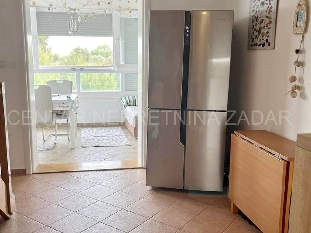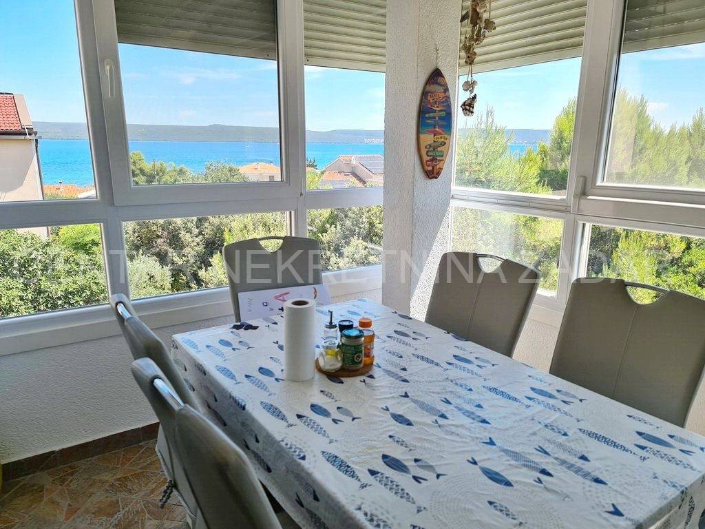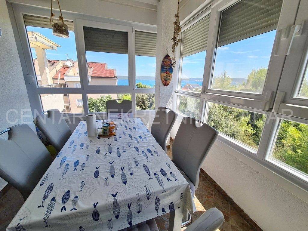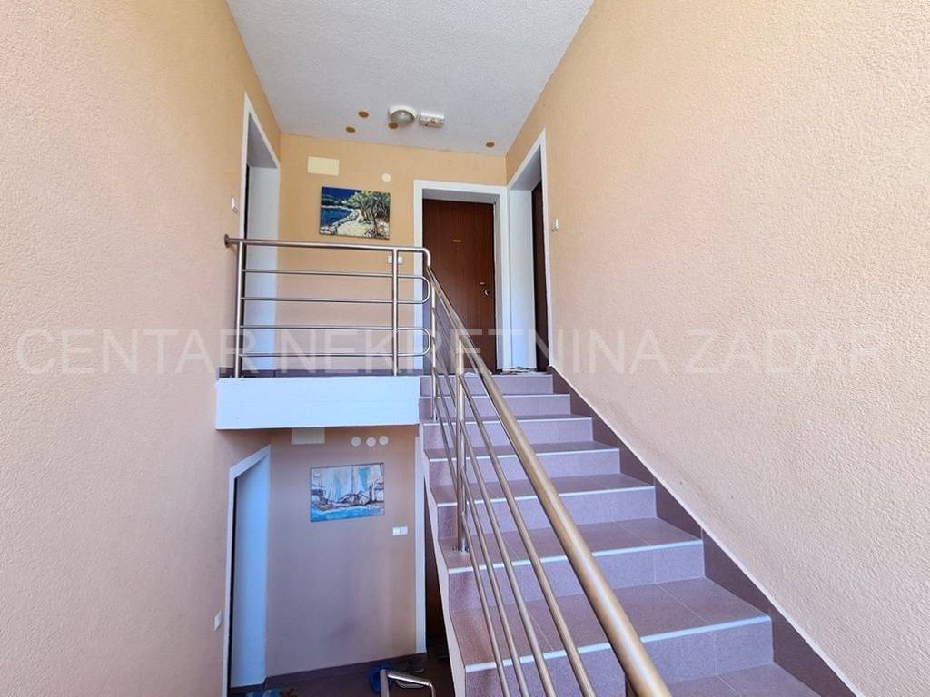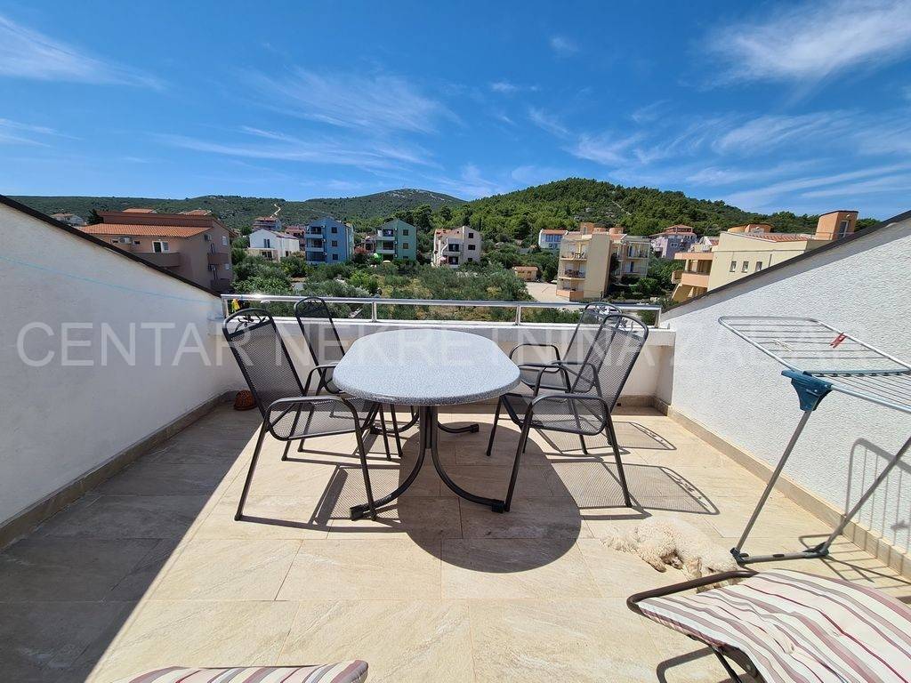 fully furnished duplex apartment in Dobropoljana is for sale, located on the second floor of a building 120 m away from the sea. On the lower floor there is an entrance hall, a kitchen, two bedrooms, a bathroom and a large glazed terrace with a view overlooking the sea. On the upper floor, there is a living room, but if necessary, the third bedroom can be arranged. The living room has access to an terrace covered with a pergola. There is also one parking space, so the total usable area is 61.06 m.