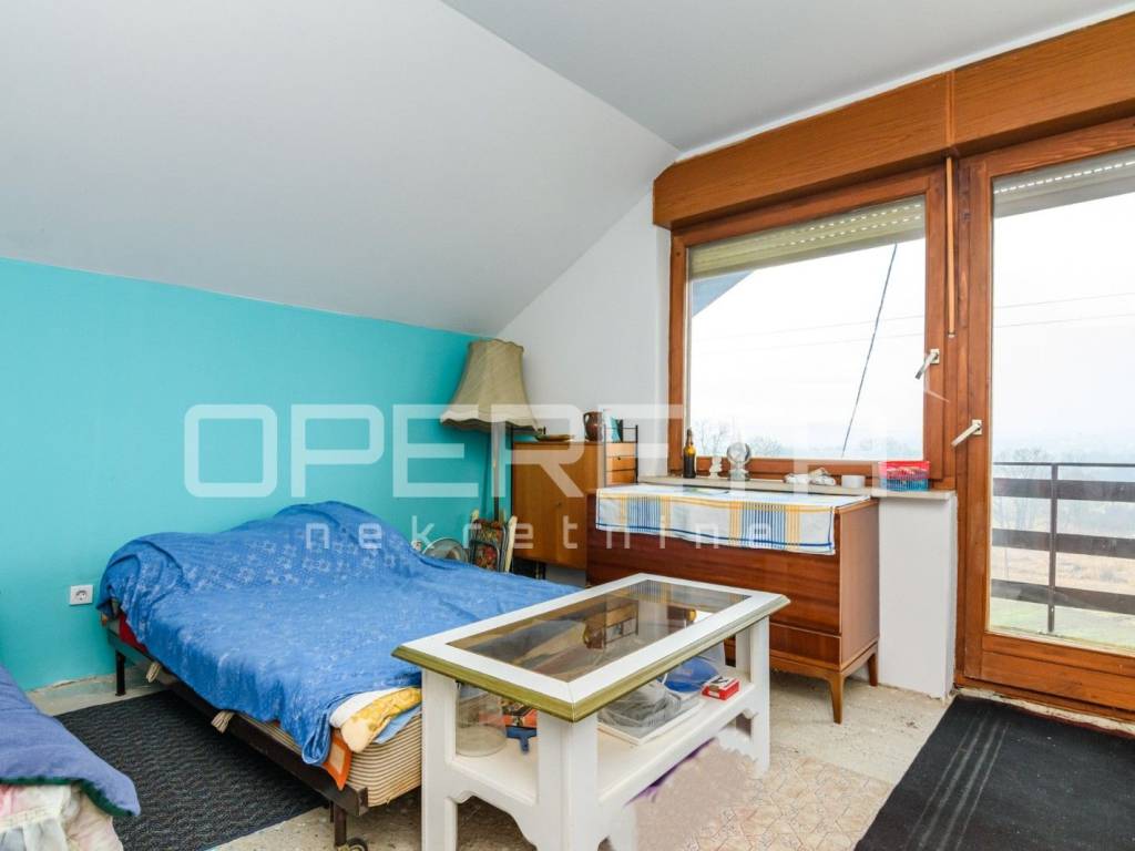 Troetažna samostojeća kuća na mirnoj lokaciji u neposrednoj blizini Oroslavja, NKP 147 m2, na uzvišenoj i blago nagnutoj parceli od 1.158 m2, s neometanim panoramskim pogledom na zelenilo i Sljeme. Na donjoj etaži nalaze se dvije prostorije s izlazom na terasu s dvorišne strane. Nutarnje stubište povezuje ju s prizemnom etažom na kojoj se nalazi "open space" dnevni boravak s kuhinjom i blagovaonicom te izlazom na balkon, kupaonica i ostava. Nutarnjim stubištem dolazi se do kata gdje se nalaze 3 spavaće sobe sa izlazom na balkon i priprema za kupaonicu. Kuću je potrebno adaptirati/dovršiti. U dvorištu 2-3 parkirna mjesta. Mirna i izolirana lokacija koja pruža mir, a istovremeno u blizini Oroslavja ( 5 min vožnje) i Stubičkih Toplica ( 7 min vožnje) i svih potrebnih sadržaja te 40 min do Zagreba. Mikro i makrolokacijski idealna je kao investicija za stanovanje ili turizam. Moguća kupnja samo gotovinom