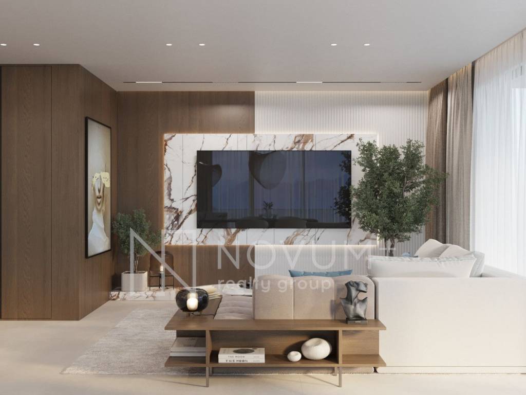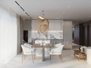 All apartments for sale have an optimal designed floor plan, with the living room, kitchen and dining area facing south, along the panoramic triple-glazed glass walls leading to large terraces. Interiors are sun-light filled and connect seamlessly with outdoor spaces.