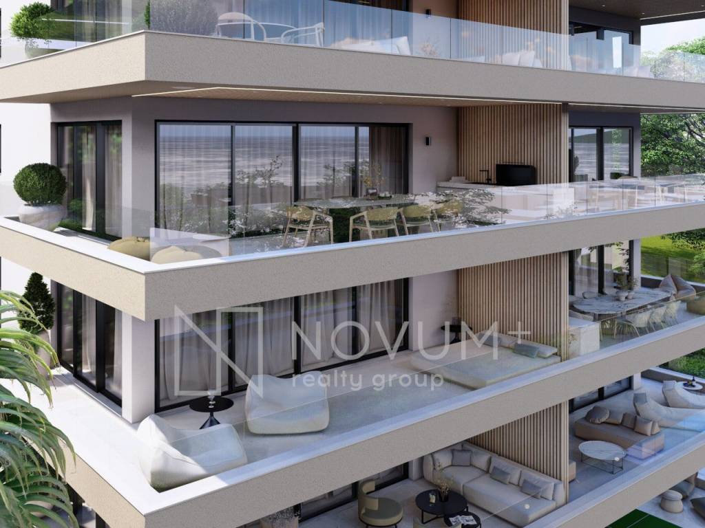 The residential building offers outstanding amenities that elevate the living experience. Owners of the two-story apartments on the ground floor will enjoy an outdoor swimming pools with sundecks each, while all residents will enjoy private parking, basement storage units and a modern staircase and elevator. Spacious south-facing terraces are designed to accommodate lounge furniture, creating the perfect spot to relax and admire the panoramic Adriatic views.