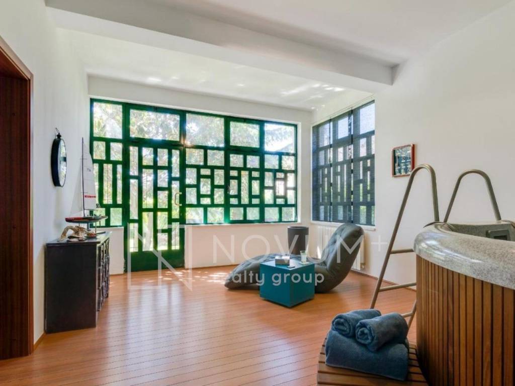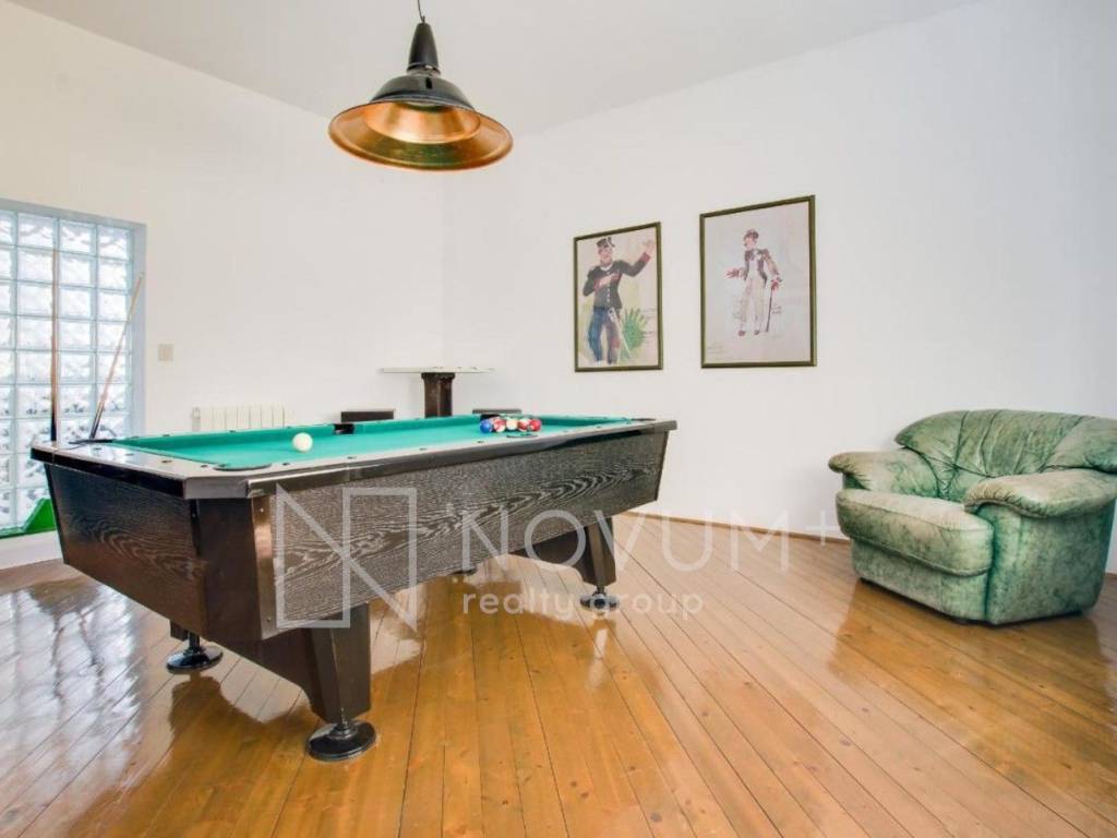 The ground floor is designed for entertainment and relaxation, featuring a large entertainment room with a whirlpool and billiards areaperfect for hosting gatherings or unwinding after a long day. This floor also includes a separate bathroom and a versatile small room that can serve as a storage area or a private home office. The meticulous attention to detail and high-quality materials make this space not just functional, but also visually striking. The highlight of this ground floor is the spacious terrace surrounded by greenery.