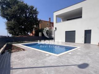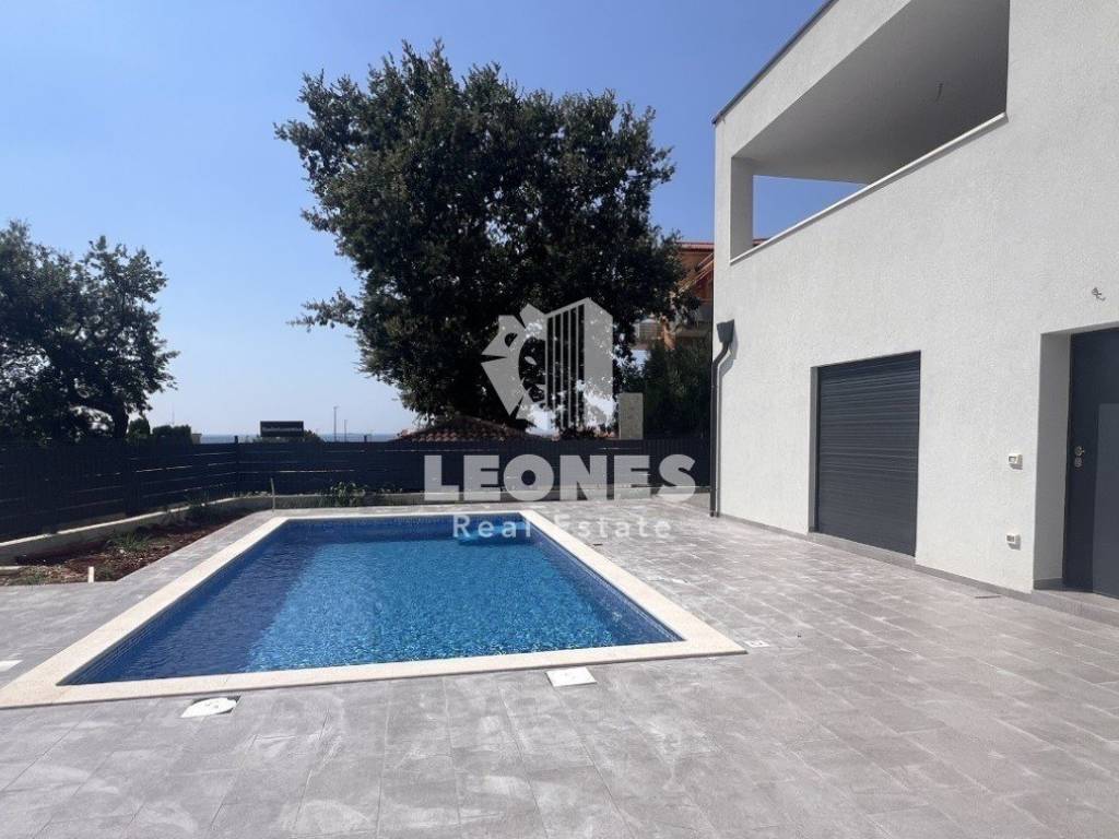 Apartment in a new building on the ground floor with a garden and a pool with a view of the sea in an attractive location in Novigrad