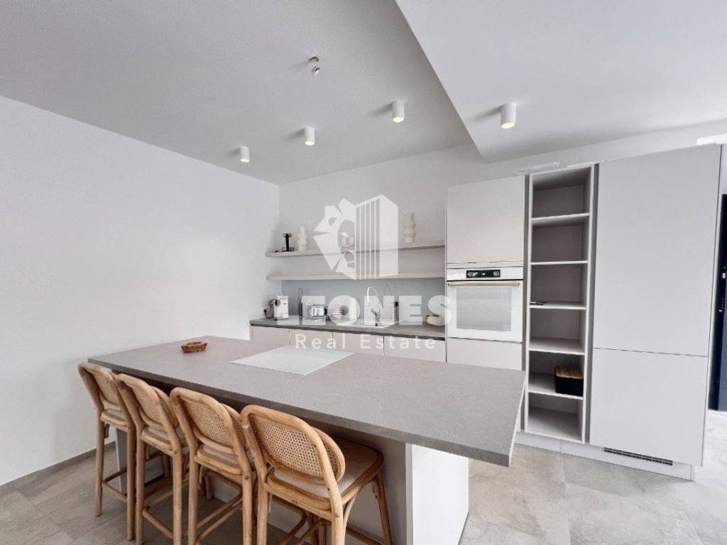 The apartment is extremely spacious and consists of an entrance hall, three bedrooms, two bathrooms and an open space living room and kitchen area with a dining area. It also has a storage room of 3.63m2.