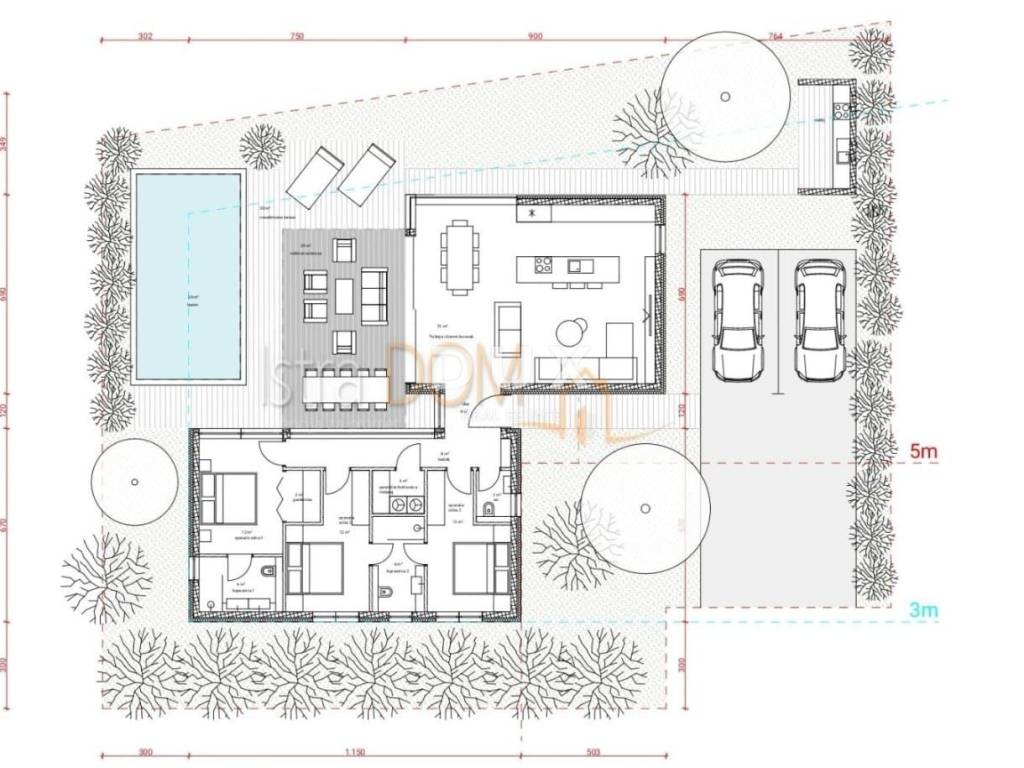 Za građevinsku parcelu ishođena je pravomoćna građevinska dozvola te postoji gotov projekt za kuću modernog dizajna i vanjskim bazenom. Površina objekata iznosi 149 m.