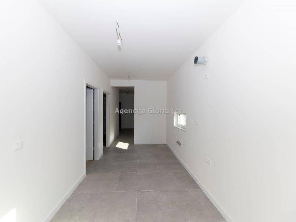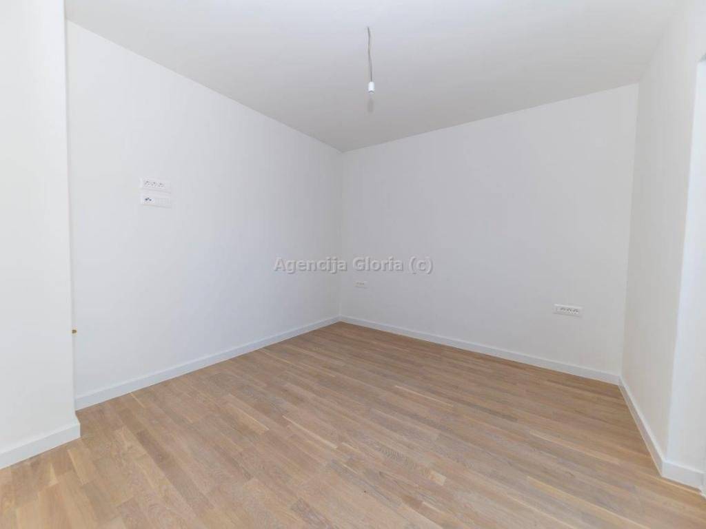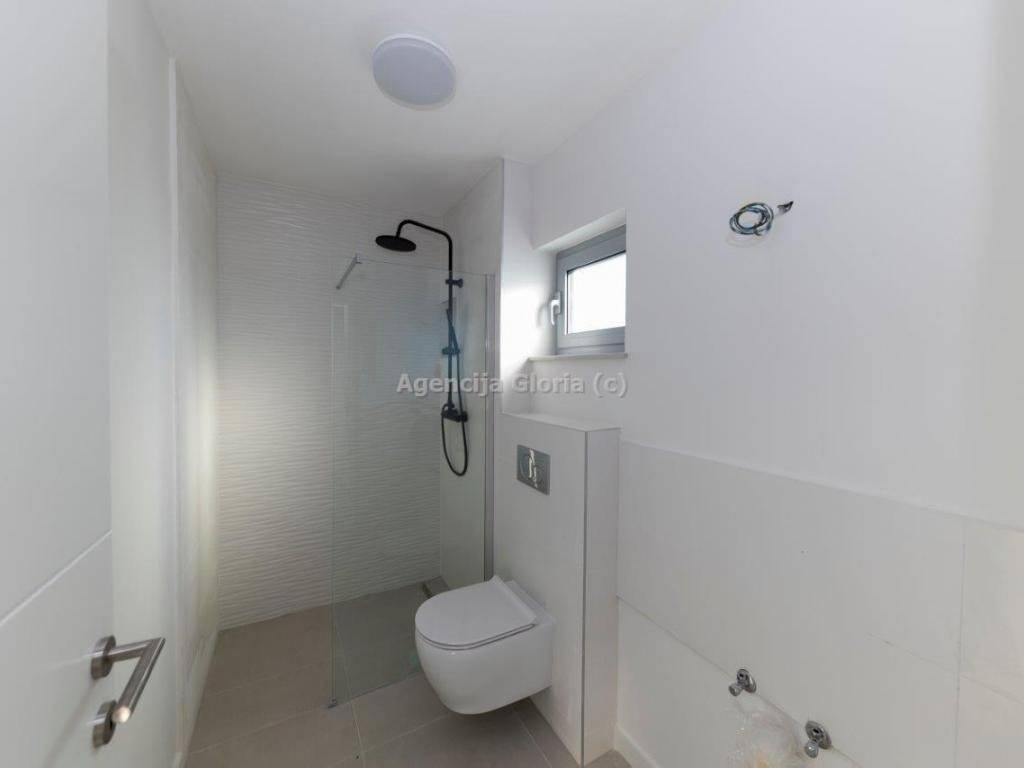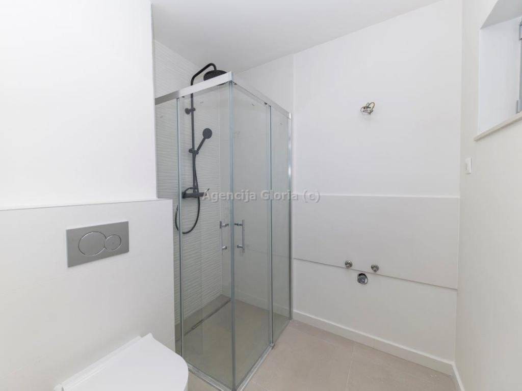 Dvoetažni stans krovnom terasom ukupne površine 164,52m2, neto površina sa svim pripadcima iznosi 108.59m2. Prostire se na dvije etaže. Na prvoj etaži se nalazi dnevni boravak i blagovaonica, kuhinja, spavaća soba i loggia. Na drugoj etaži je smještena spavaća soba sa vlastitom kupaonicom, dvije manje spavaće sobe i kupaonica. Na krovu odnosno trećoj etaži se nalazi sauna i krovna terasa s jacuzzijem. Stanu pripadaju dva parkirna mjesta.Prodajna cijena iznosi 650.000,00.