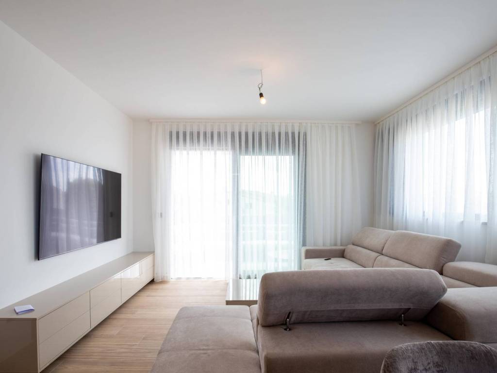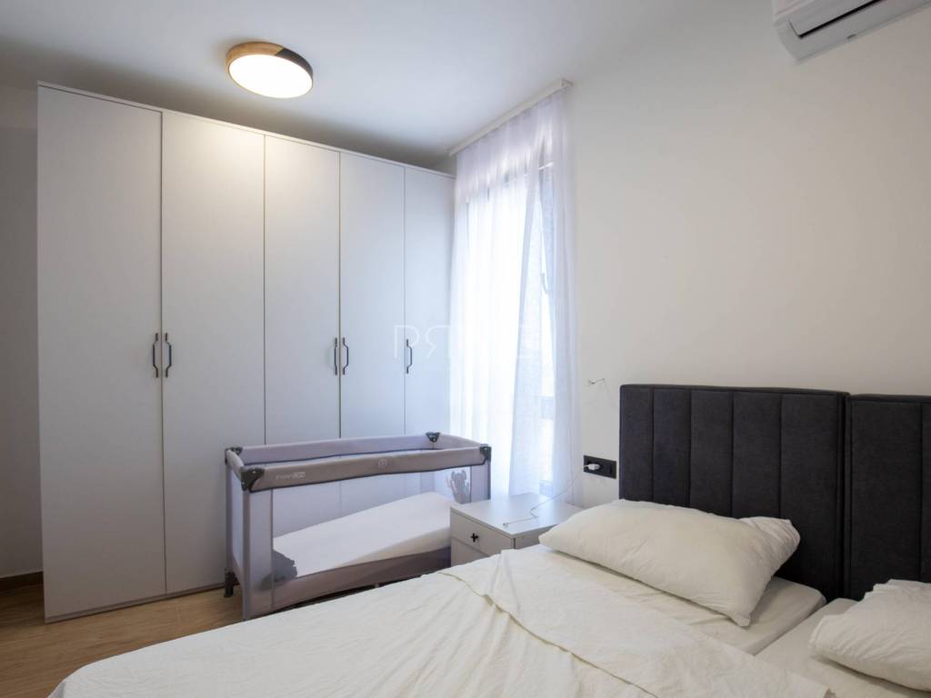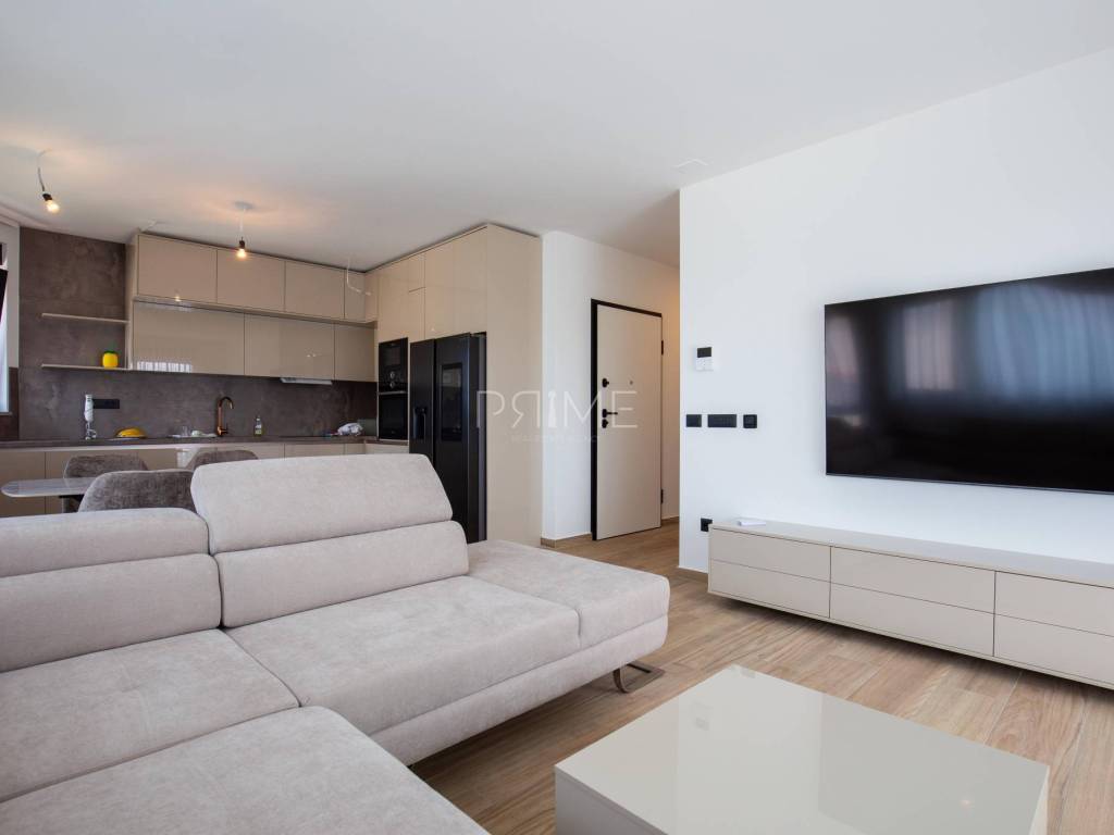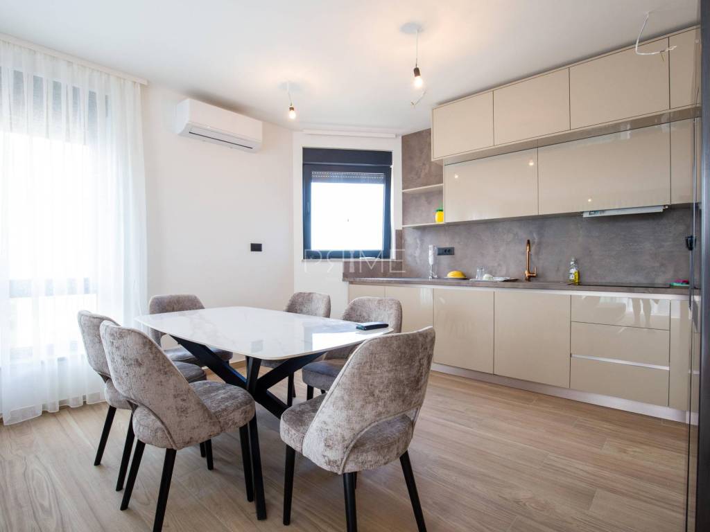 Stan je kompletno opremljen i namješten modernim namještajem, a ugrađeno podno grijanje kroz cijeli prostor pruža dodatnu toplinu i udobnost tijekom hladnijih mjeseci. Dodatno, uz stan dolaze dva parkirna mjesta koja osiguravaju praktičnost i sigurnost.