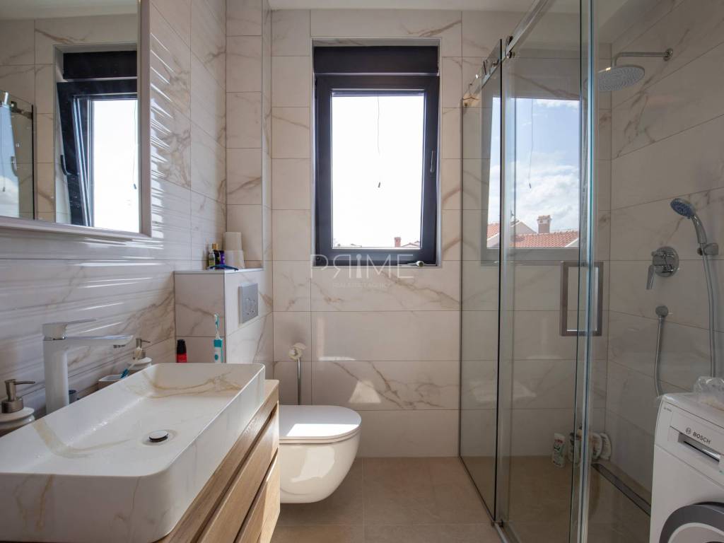 Posebnu vrijednost ovom penthouseu daje prostrana krovna terasa s pergolom, s koje se pruža impresivan pogled na more. Objekt je smješten na izuzetno atraktivnoj lokaciji, svega 150 metara od mora, što osigurava ugodan i kvalitetan životni stil.