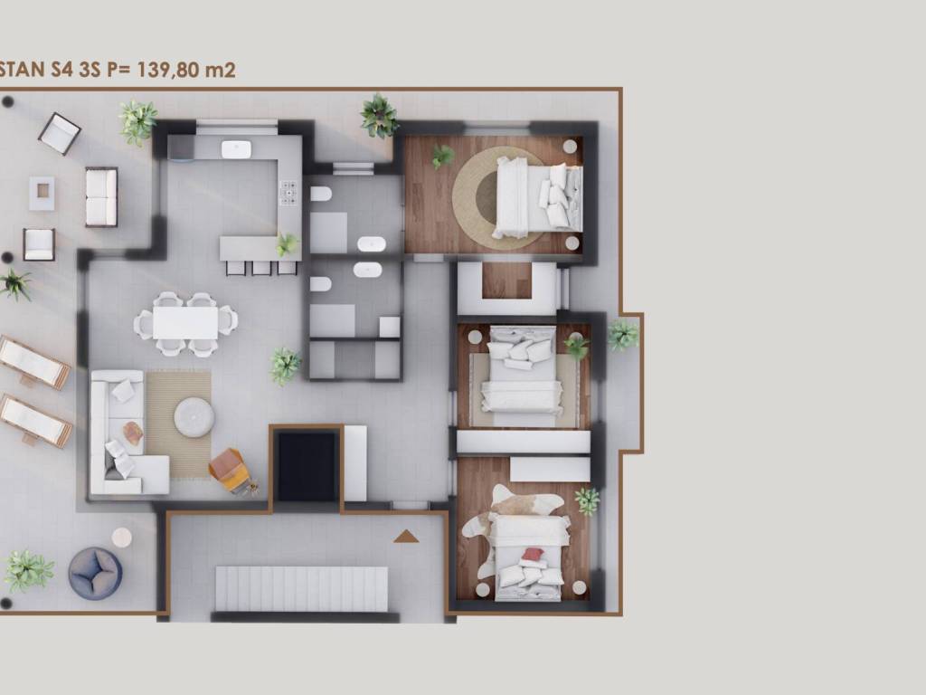 S1 – 147,52 m², tri spavaće sobe, cijena 570.000 EUR.