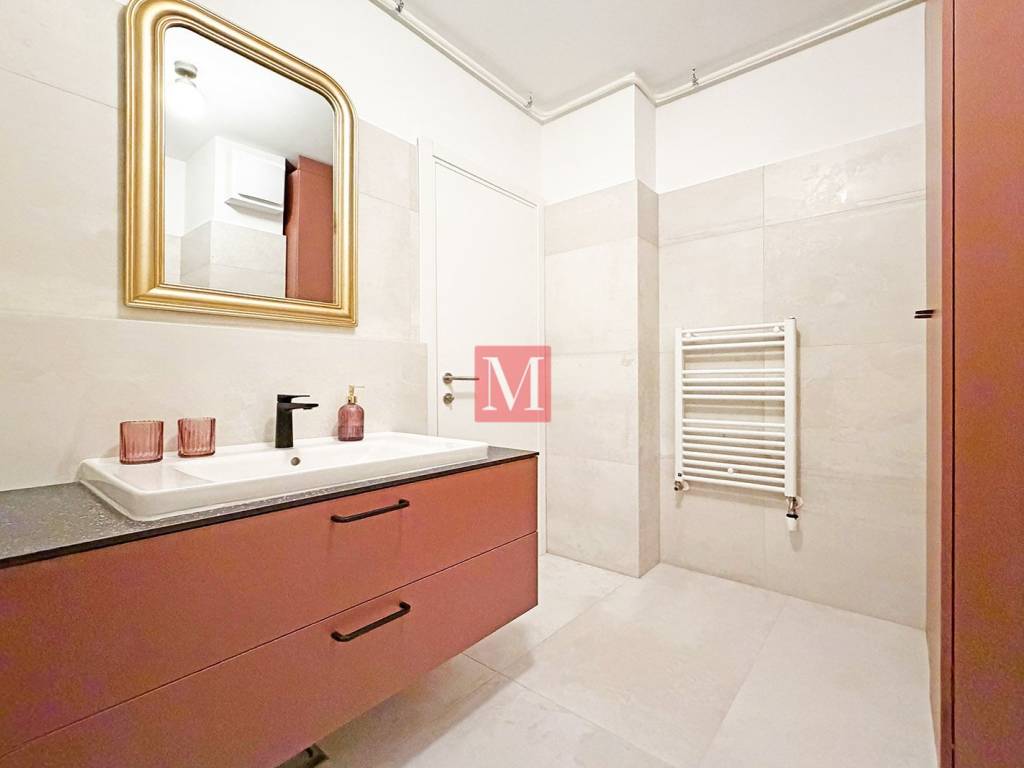Modern 2-bedroom apartment of 54 m2 with a garden on the ground floor of a luxurious new building (2024) in an excellent microlocation in the immediate vicinity of Kvaternik Square. It consists of an entrance hall, living room with kitchen and dining room, hallway, bathroom and two bedrooms. The apartment also comes with a garage parking space. Close to public transport (tram), market, shops, cafes, restaurants, schools, kindergartens, parks and other facilities necessary for everyday life. Long-term rental with a mandatory 2x deposit. Keeping pets in the apartment is not allowed. Agency fee: 1 month's rent + VAT.