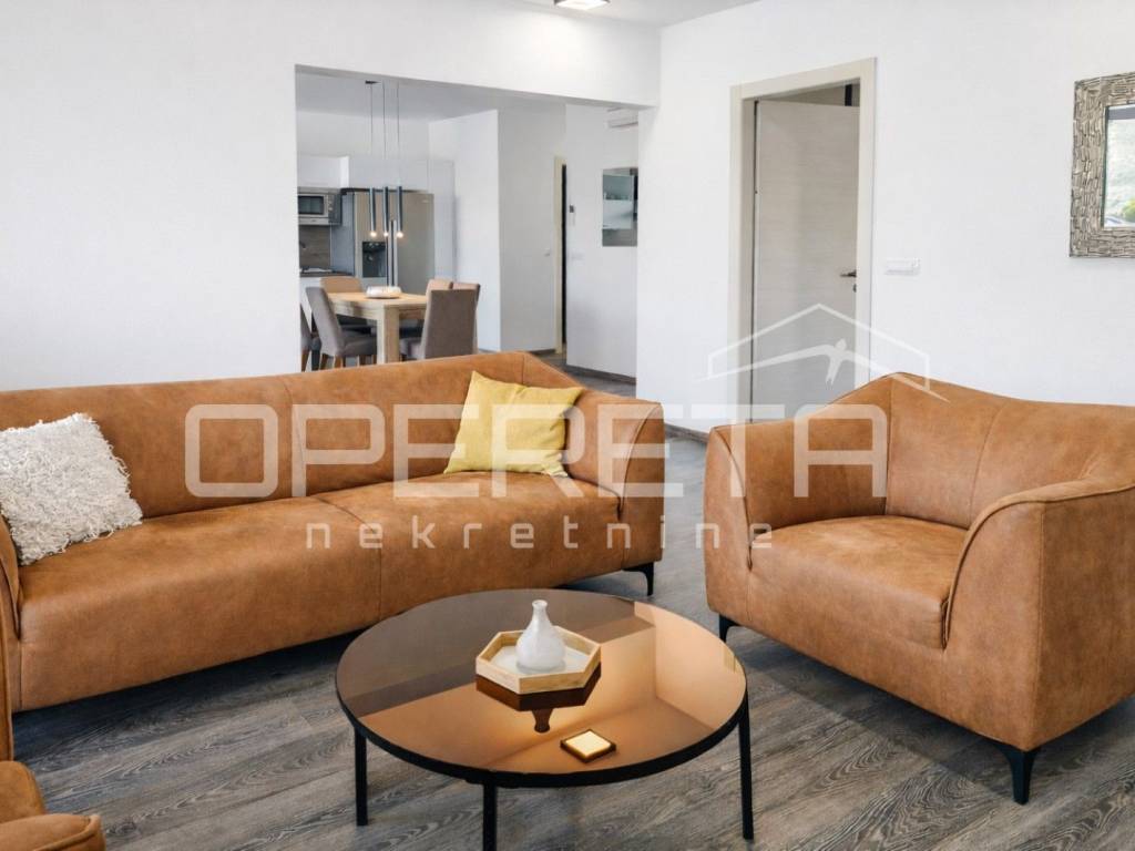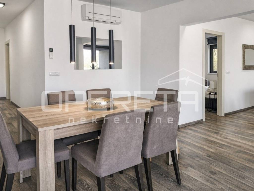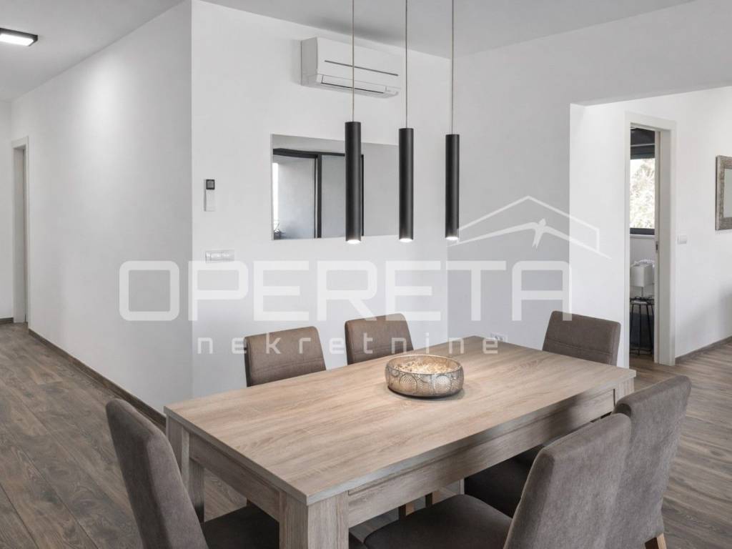 The apartment is equipped with air conditioning units in all rooms, ensuring an optimal climate year-round. It also has its own garage space with an elevator leading directly to the apartment, guaranteeing practicality and security for both owners and guests.