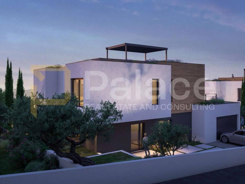 The upper floor is accessed by internal stairs, where a dressing room and three spacious bedrooms are located, each with its own bathroom, and two have their own terrace. This floor also features an additional bedroom/office/wellness room (if a wellness room, installations for a sauna and whirlpool bath will be prepared), which also has its terrace. All terraces and rooms offer a stunning open view, emphasizing further the exclusivity of this property.