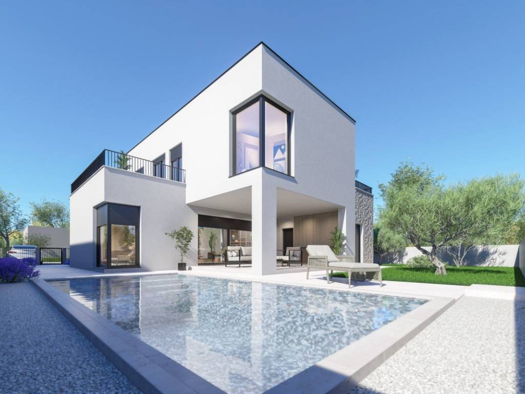 Vi presentiamo questa eccezionale villa di lusso dal design moderno, situata in una posizione privilegiata a Sukošan, che si estende su un terreno di 575 m e offre 233 m di spazio abitativo elegantemente arredato. Questa imponente proprietà è stata progettata con la massima attenzione ai dettagli ed è pensata per un completo godimento, sia per una tranquilla vita familiare che come ottimo investimento per laffitto turistico.