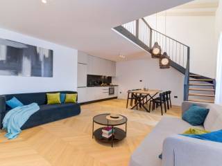 Lappartamento è situato al secondo piano e mansarda, ha una superficie complessiva di 132,51 m ed è composto da: ingresso, ampio soggiorno con sala da pranzo, cucina modernamente attrezzata, disimpegno con cabina armadio, una camera da letto e bagno al piano inferiore; mentre la mansarda ospita due camere da letto aggiuntive, una galleria e un secondo bagno, ideali per gli ospiti o per la vita familiare.