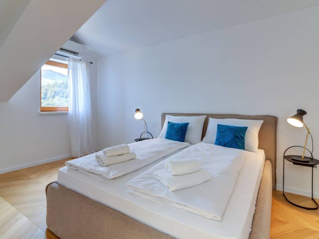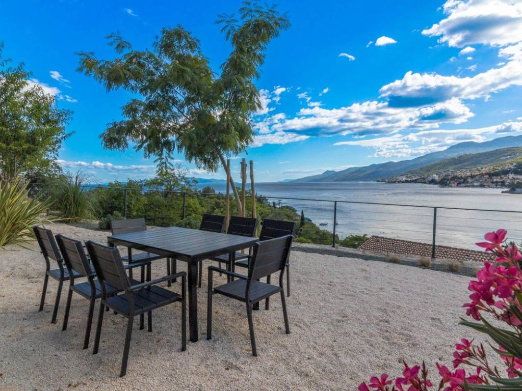 Le caratteristiche speciali di questo appartamento includono: un giardino privato di 166 m decorato con orticoltura, perfetto per rilassarsi o socializzare allaperto, un posto auto in garage chiuso, una piscina in comune con unampia area prendisole e viste spettacolari su Volosko, Opatija e lintero Golfo del Quarnero.