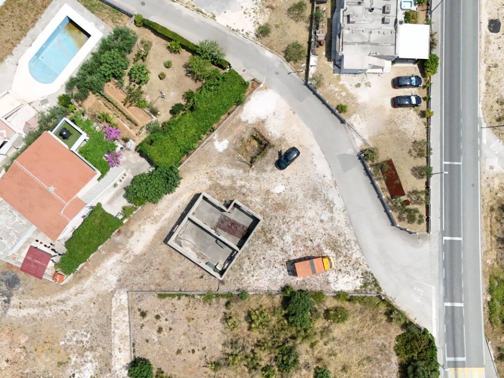 Sul terreno è presente un edificio in costruzione, la cui costruzione è stata avviata ma non completata (99 m). La platea di fondazione (10 x 10 m) e i muri sono stati realizzati e i lavori sono stati interrotti nel 1984. È stato inoltre scavato uno scavo di 4 x 4 m.