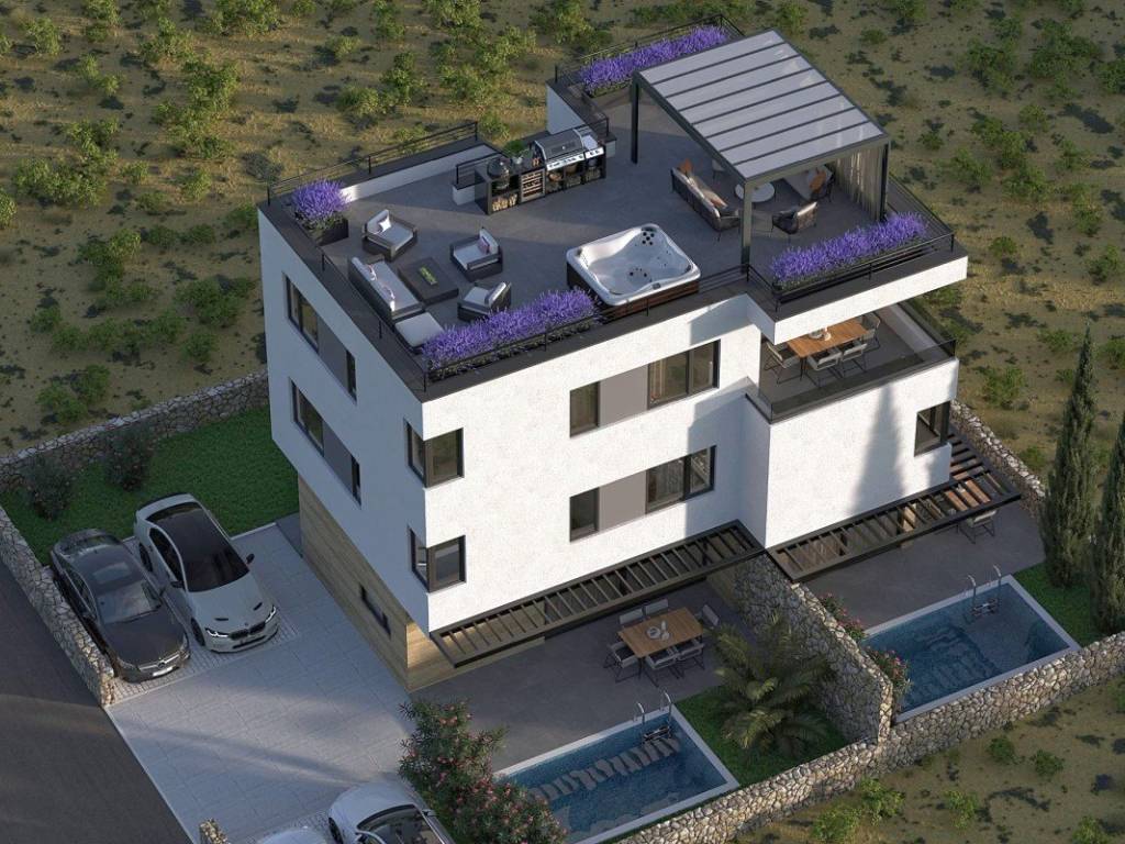 In un edificio di nuova costruzione sullisola di Pag è in vendita un appartamento che si estende complessivamente su due piani. La superficie abitabile di entrambi i piani è di 94 m2 di superficie lorda.