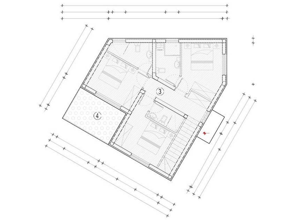 Ubicato su un lotto di terreno di 597 m2, con una superficie abitabile complessiva di 168 m2, distribuita su due piani.