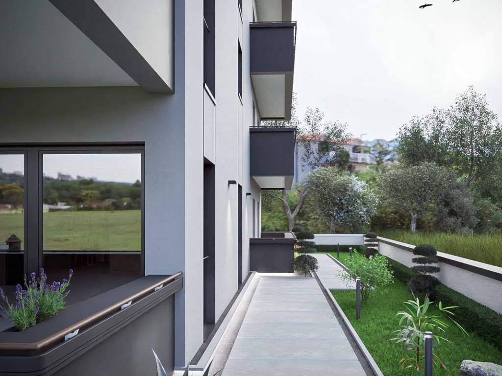 In vendita un appartamento con tre camere da letto (S1) con una superficie abitabile di 118 m2 in un edificio di nuova costruzione disposto su tre piani. Si trova al piano terra delledificio e i suoi 118 m2 sono così distribuiti: