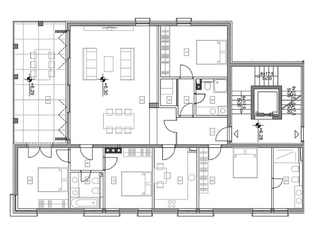 Lappartamento ha una superficie di 175,72 m ed è caratterizzato da una disposizione funzionale adattata allo stile di vita moderno. È costituito da un ingresso, un vestibolo e un corridoio, che conducono ad altre stanze. Cè uno spazio aggiuntivo per riporre le cose, tre bagni e quattro spaziose camere da letto. La zona giorno dellappartamento è composta da una cucina e da un ampio soggiorno, che trasmettono una sensazione di apertura, con accesso diretto ad unampia terrazza.