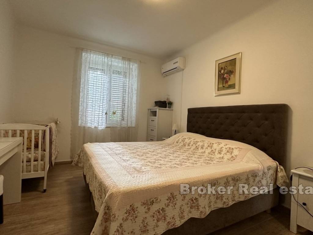 È completamente arredato e dotato di tutti gli elettrodomestici necessari ed è pronto per essere abitato immediatamente. Questa proprietà, secondo il contratto di inquilino certificato, comprende un giardino di 65 mq e un garage di 21 mq.