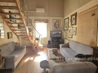 Lappartamento comprende un soggiorno, una cucina, due camere da letto e un bagno al primo piano, mentre il secondo piano contiene altre due camere da letto. La superficie abitabile totale è di 90 metri quadrati e la terrazza copre 50 metri quadrati. Grazie alla sua posizione privilegiata, questo appartamento è perfetto per gli affitti turistici.