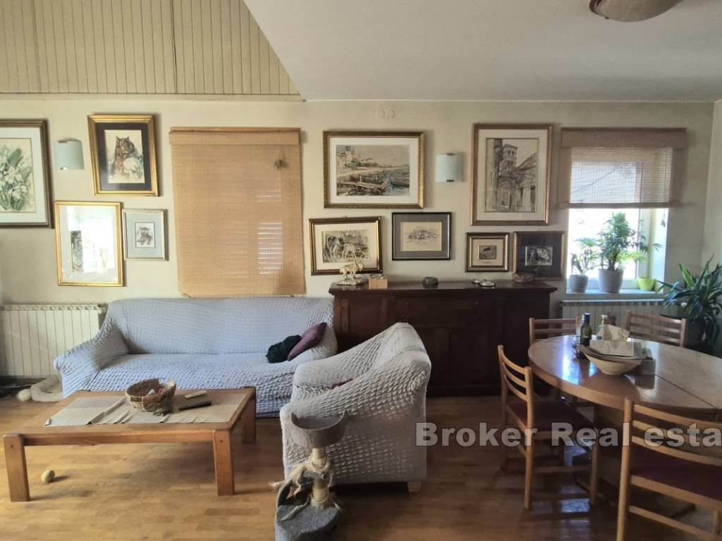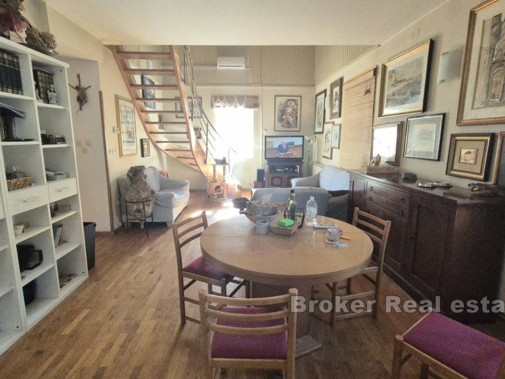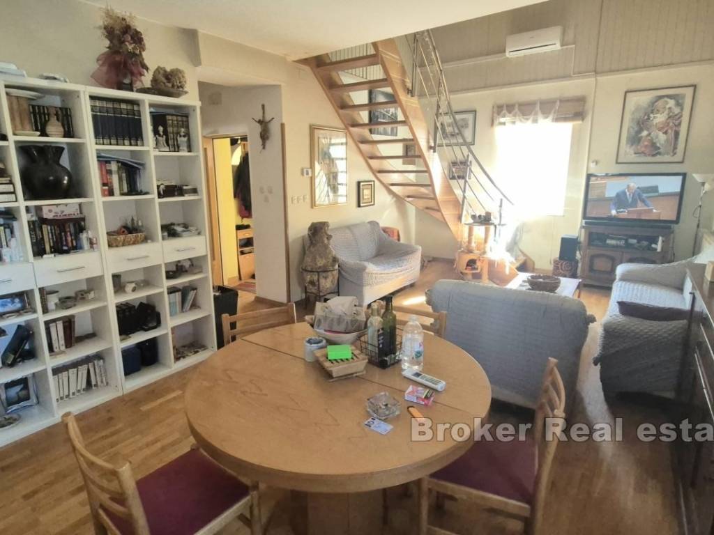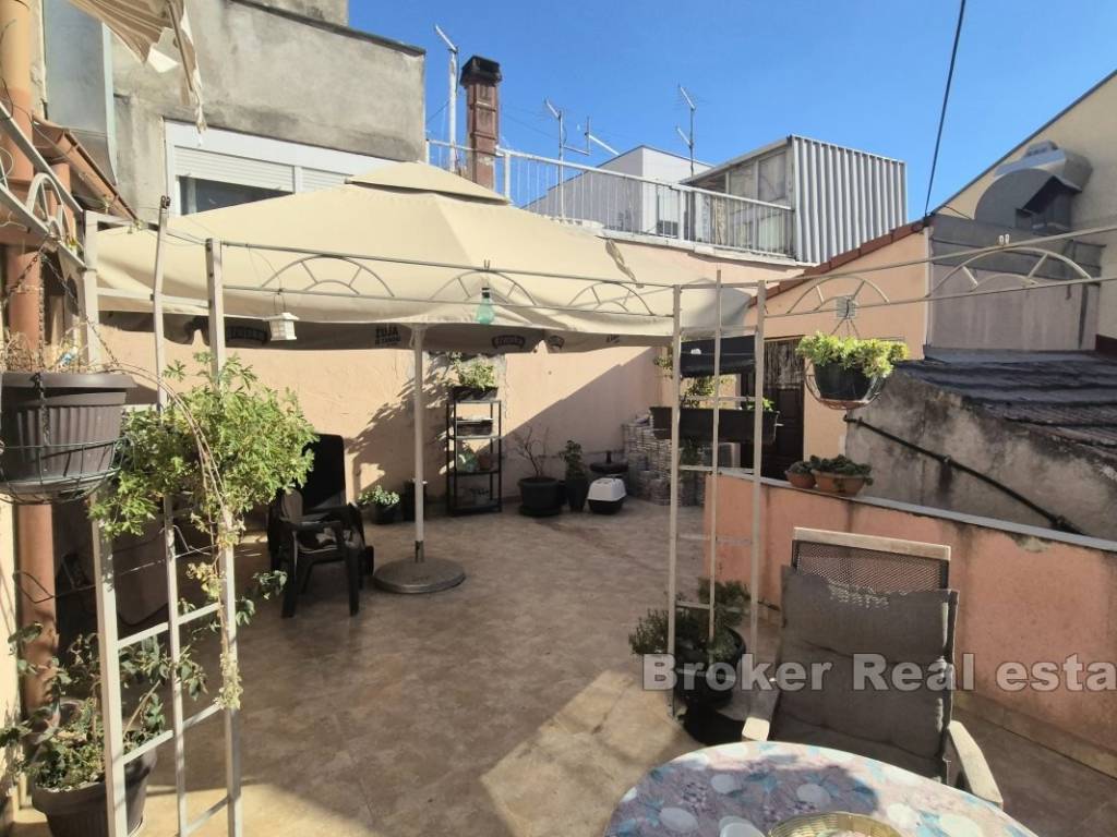 Un appartamento su due piani è in vendita al primo piano di una casa, con unampia terrazza che offre uno spazio confortevole per il relax, situato nel centro della città.