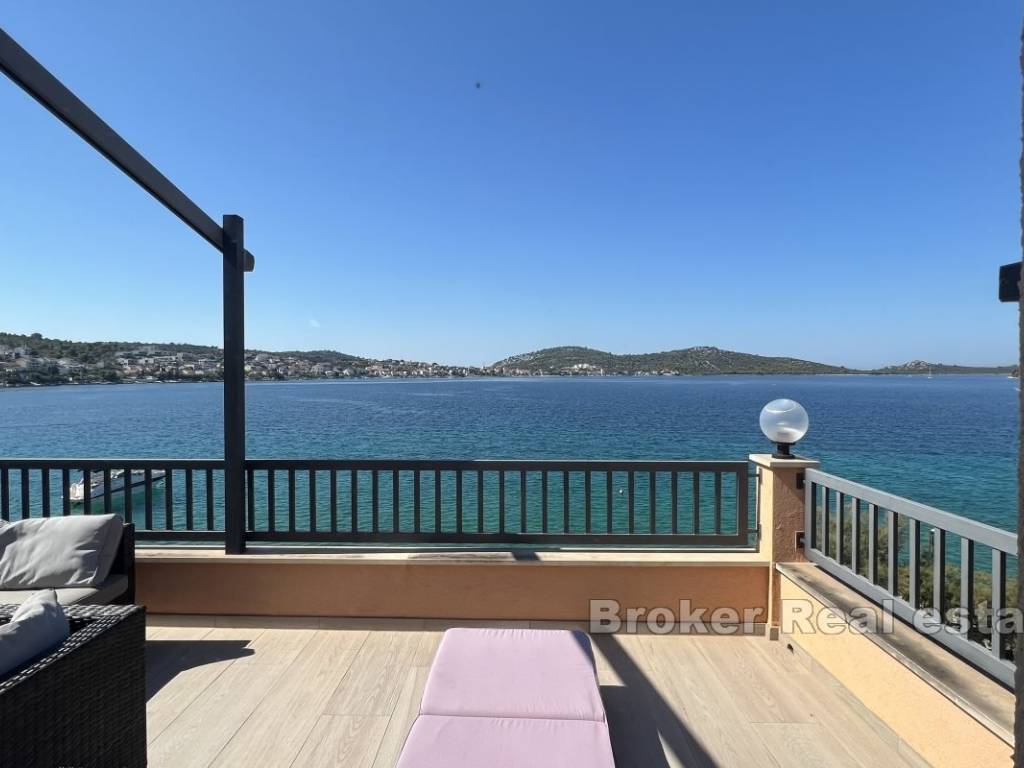 In vendita, una casa situata prima fila al mare, in una posizione tranquilla che garantisce privacy e sicurezza. Questa proprietà copre unarea di circa 300 m2 e si sviluppa su tre piani ed è composta da tre appartamenti esposti a sud con una splendida vista sul mare e un monolocale situato sul lato nord-ovest della proprietà.