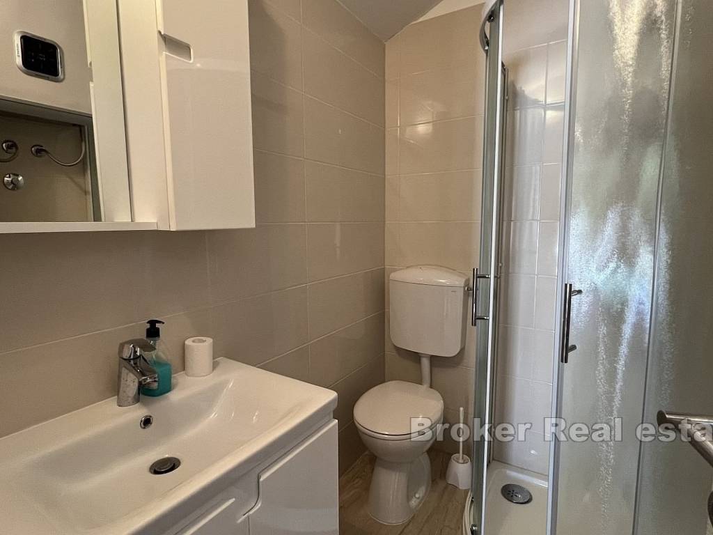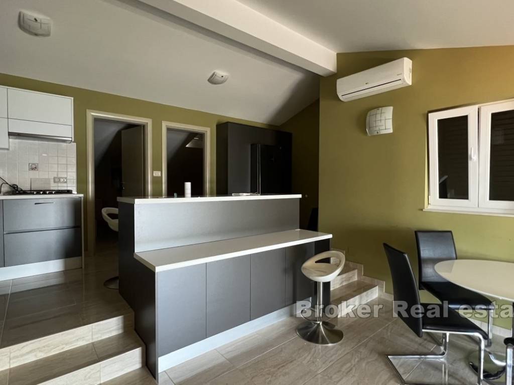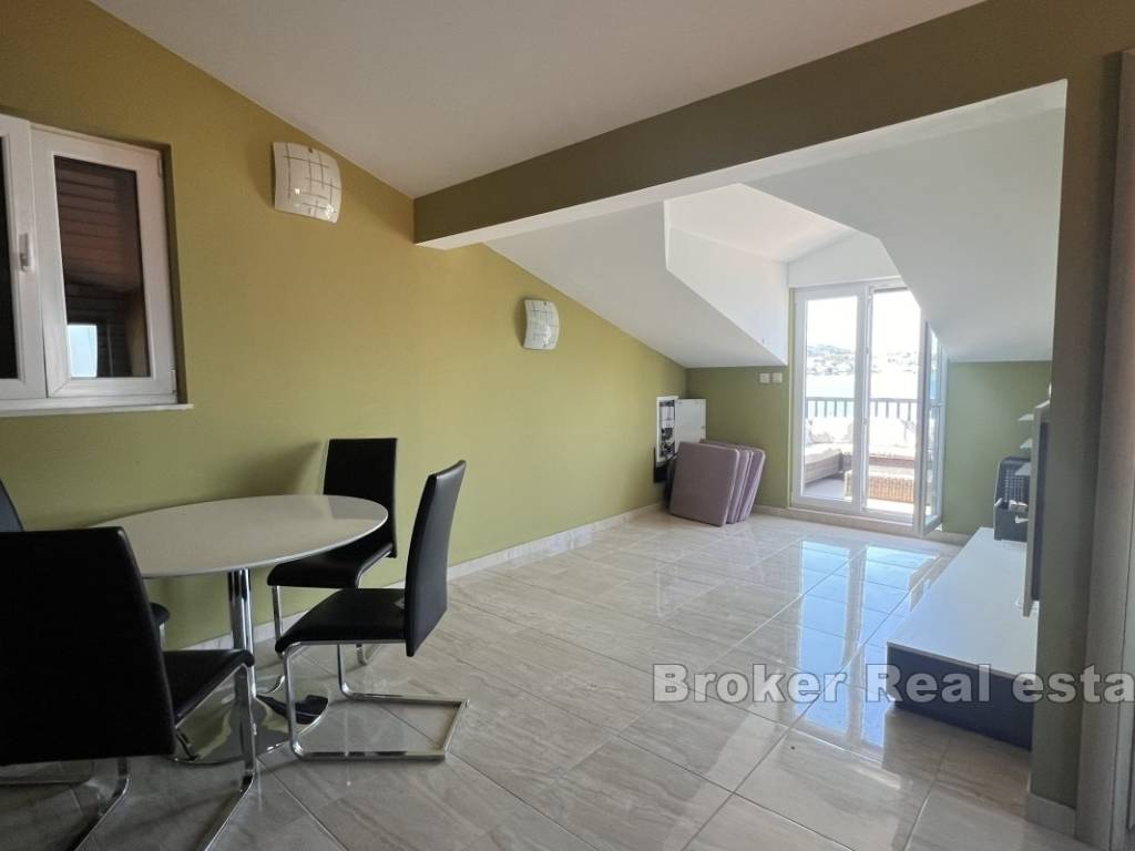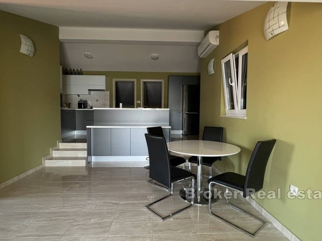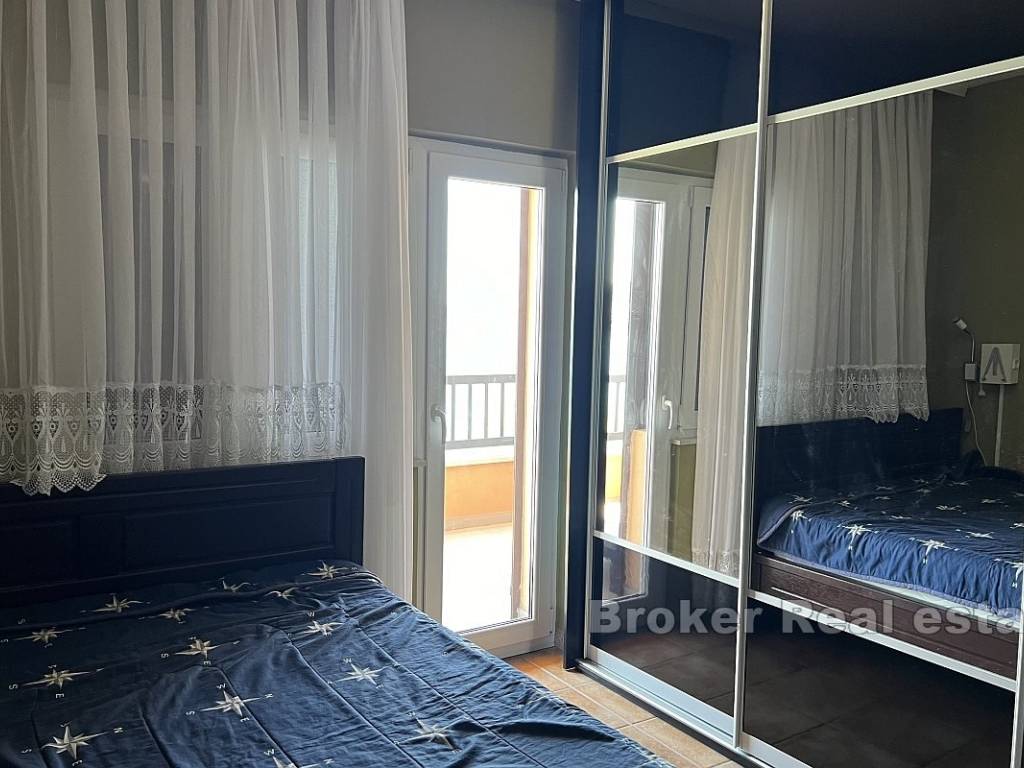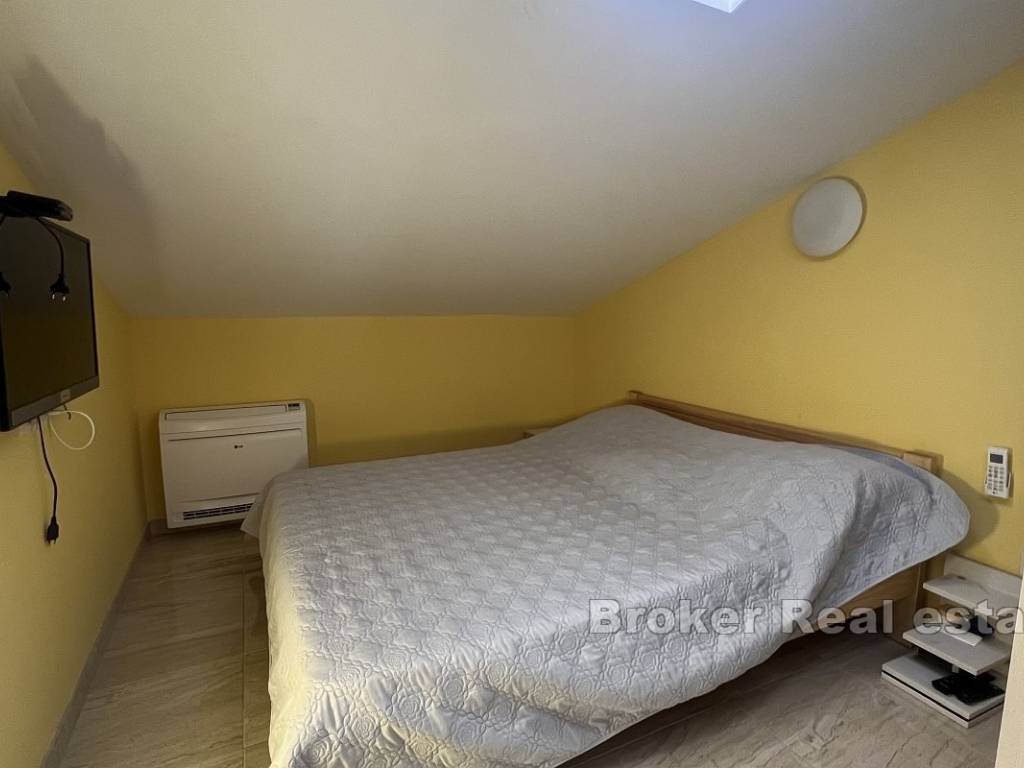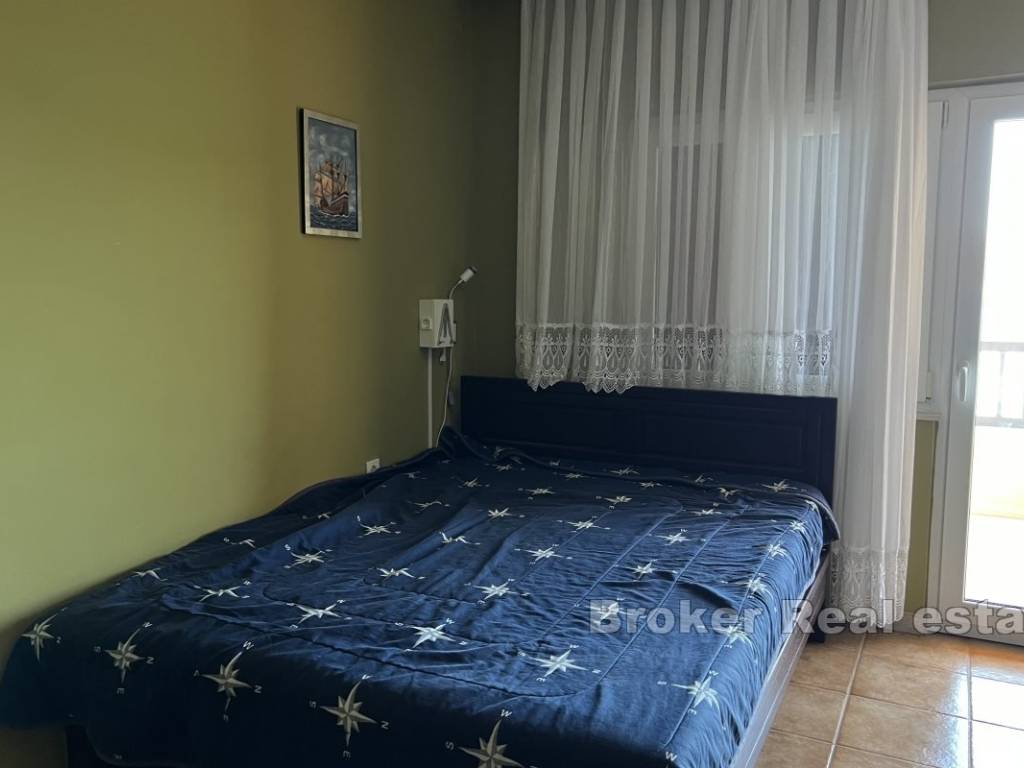 Il piano terra superiore è composto da due camere da letto, un bagno, dispensa, cucina, sala da pranzo e soggiorno, che si trovano nellarea comune. Lappartamento ha anche una spaziosa terrazza con vista sul mare e sulle isole.